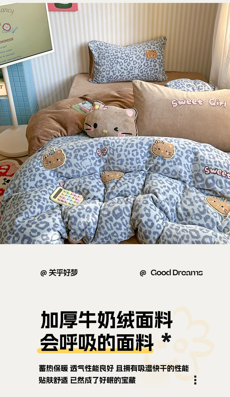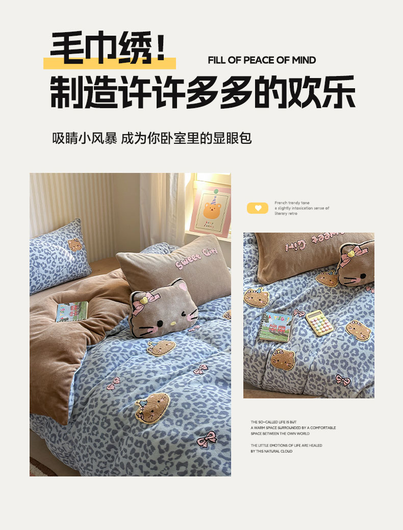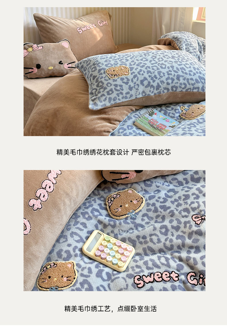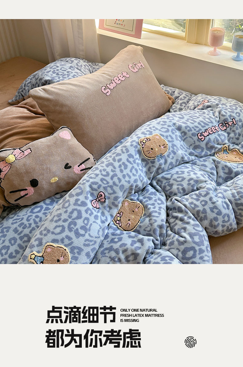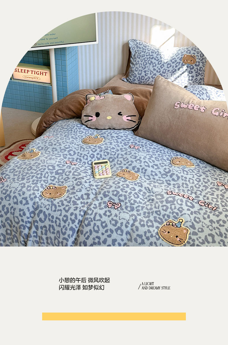 当前位置: 91家纺网 > 商品网购 > 床品套件 > 四件套 > 牛奶绒四件套 > 眠屿家纺 2025新款加厚牛奶绒毛巾绣蝴蝶猫四件套 猫咪多多-蓝
