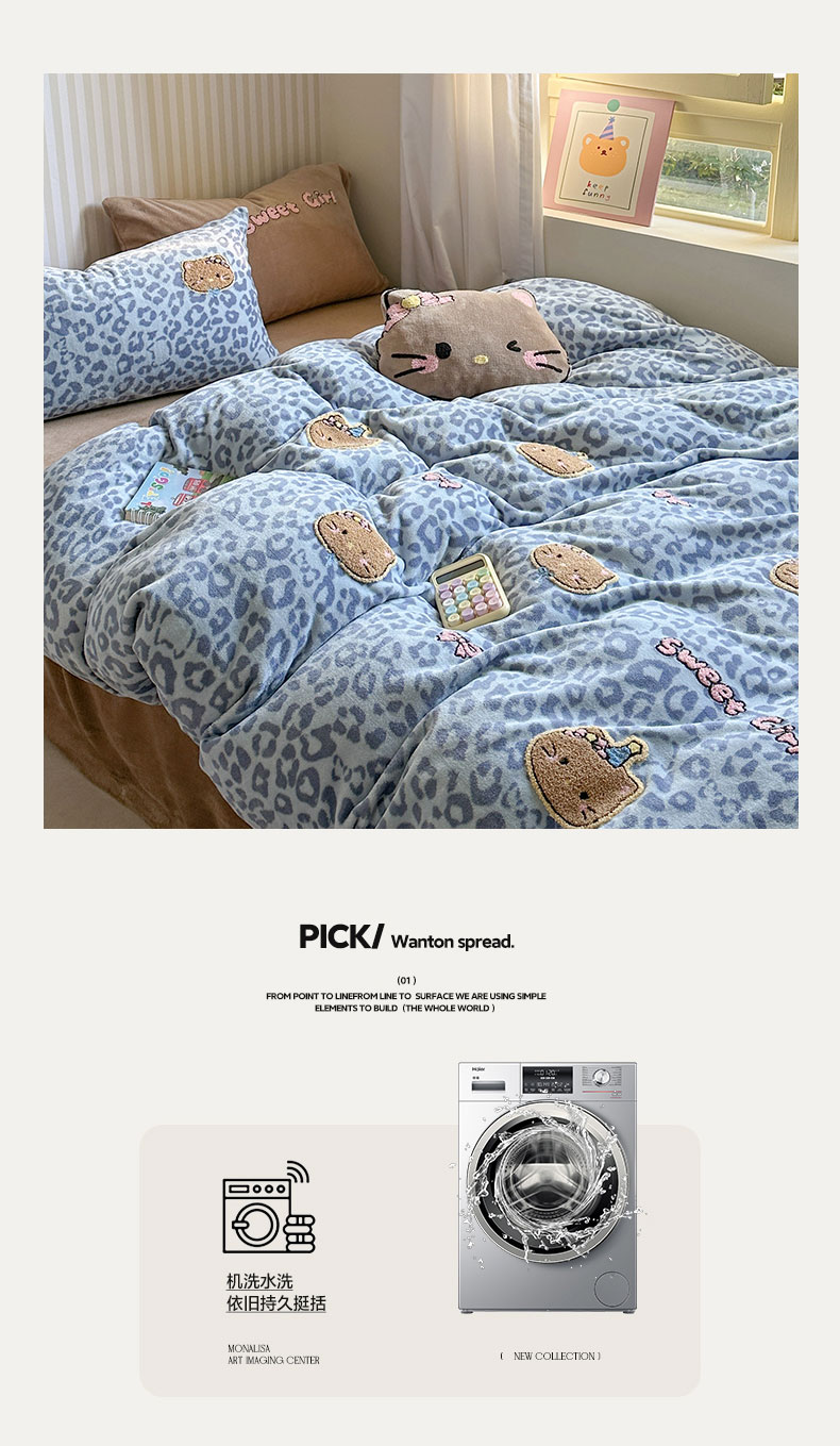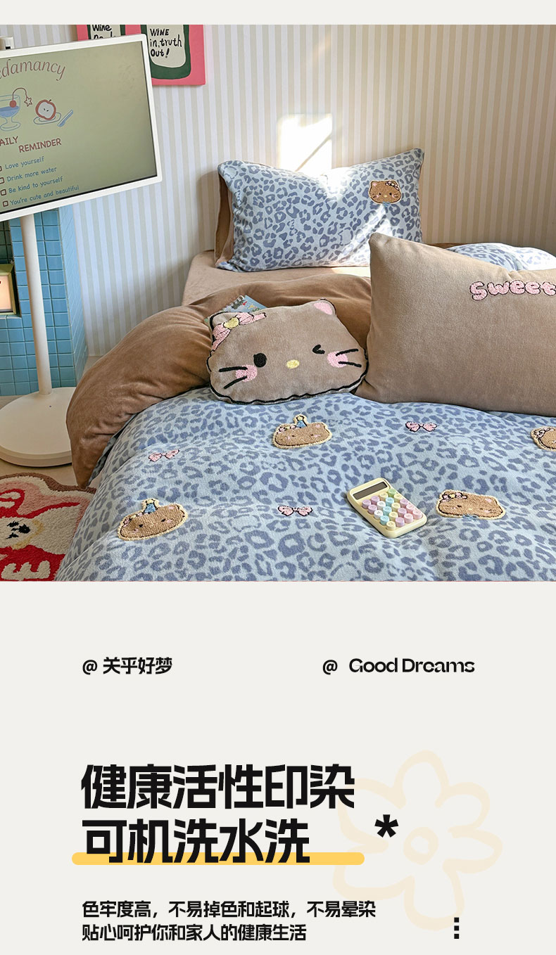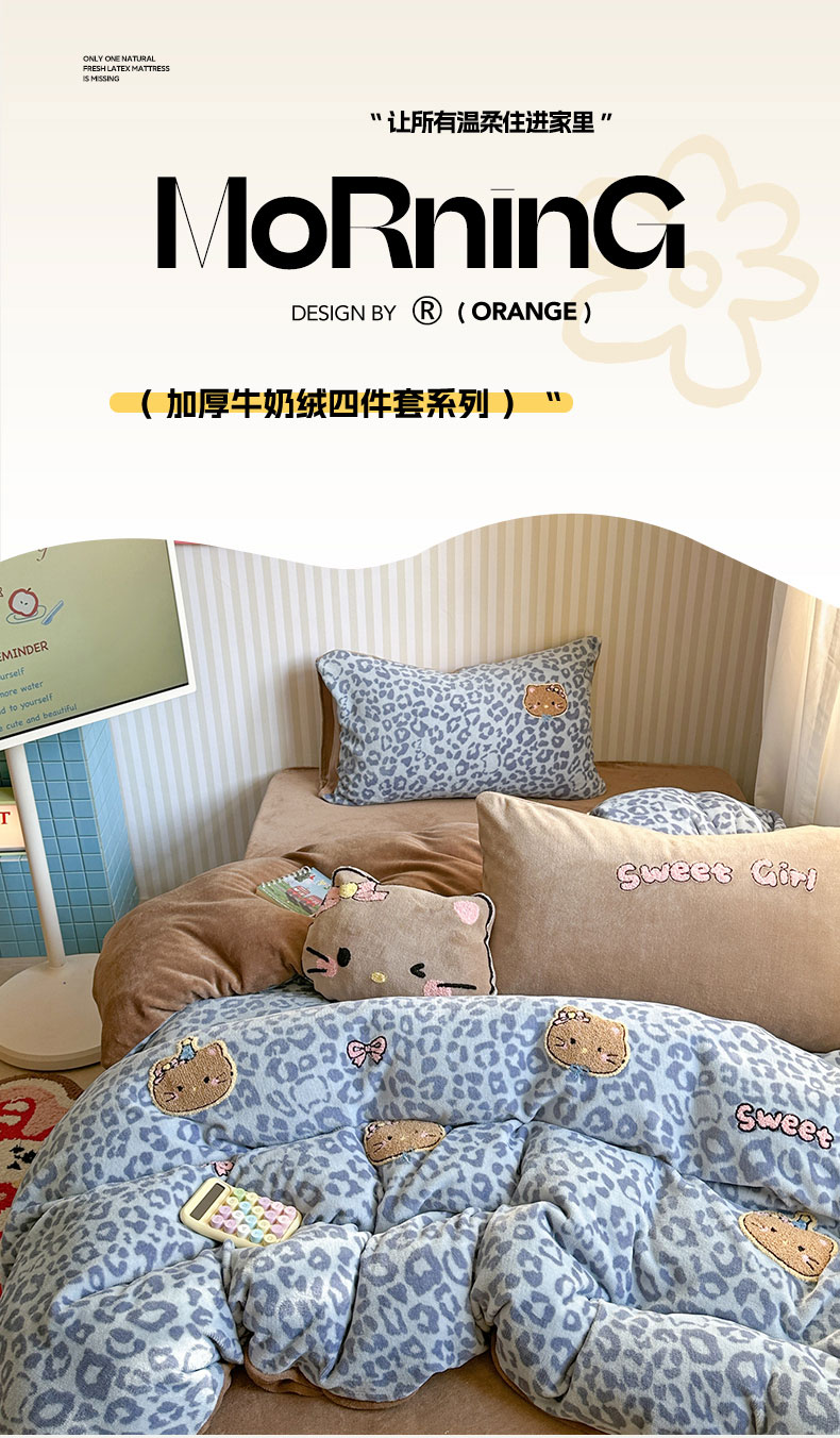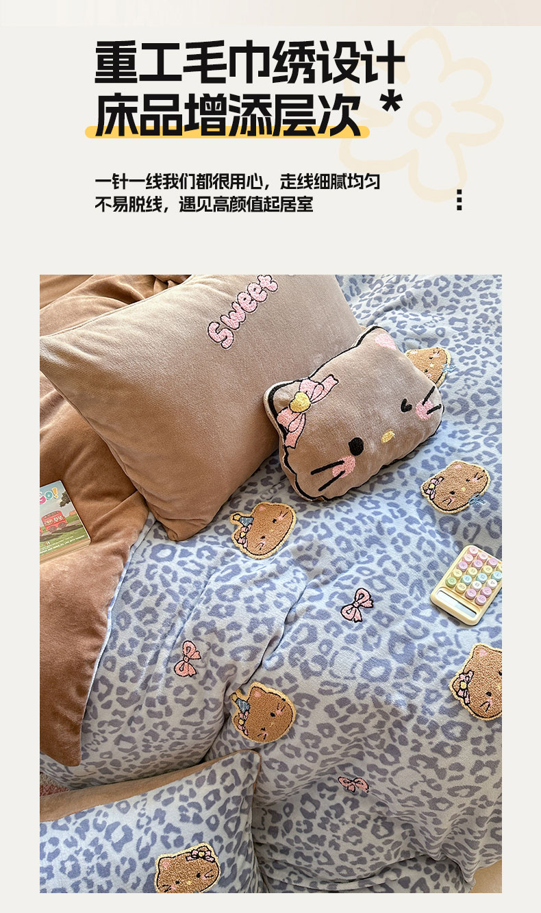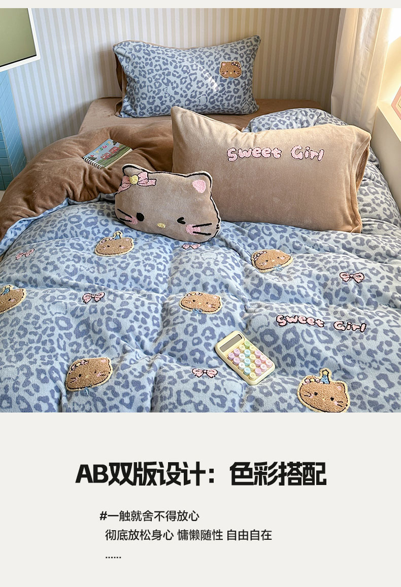 当前位置: 91家纺网 > 商品网购 > 床品套件 > 四件套 > 牛奶绒四件套 > 眠屿家纺 2025新款加厚牛奶绒毛巾绣蝴蝶猫四件套 猫咪多多-蓝
