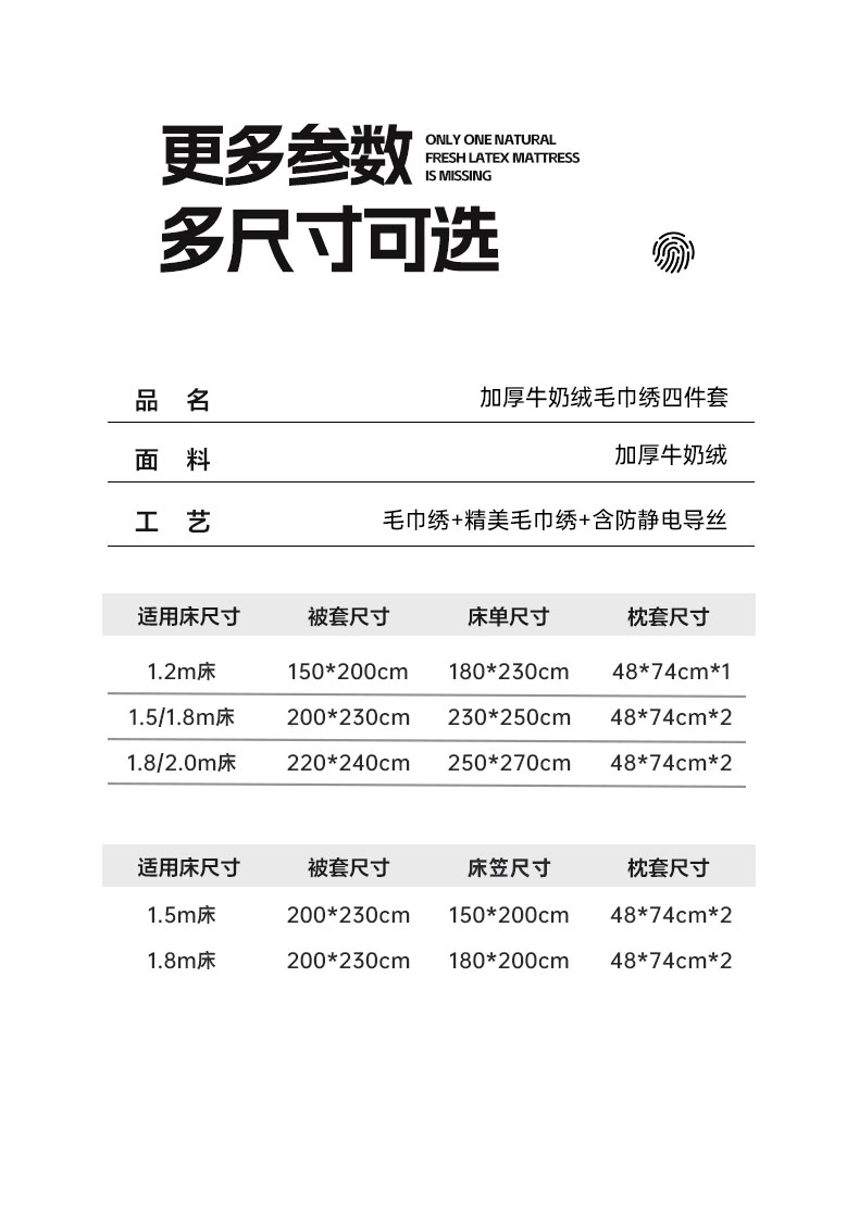 【床笠款】1.8四件套-被套200x230 | ¥120.00 |