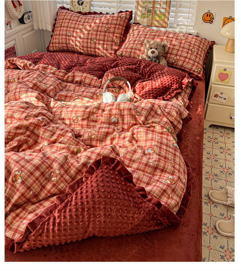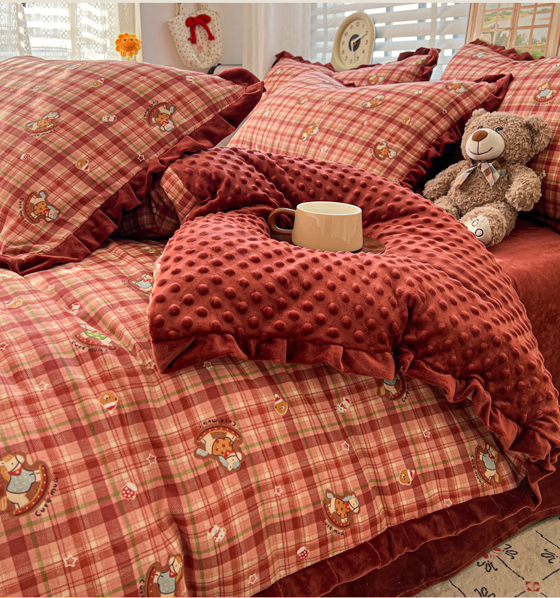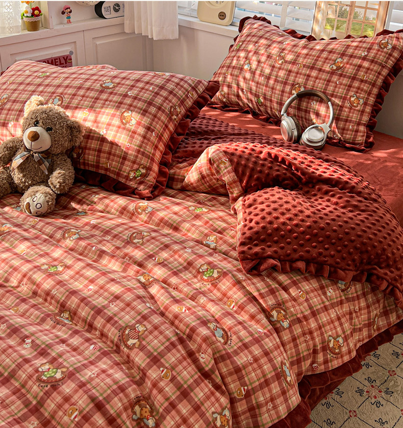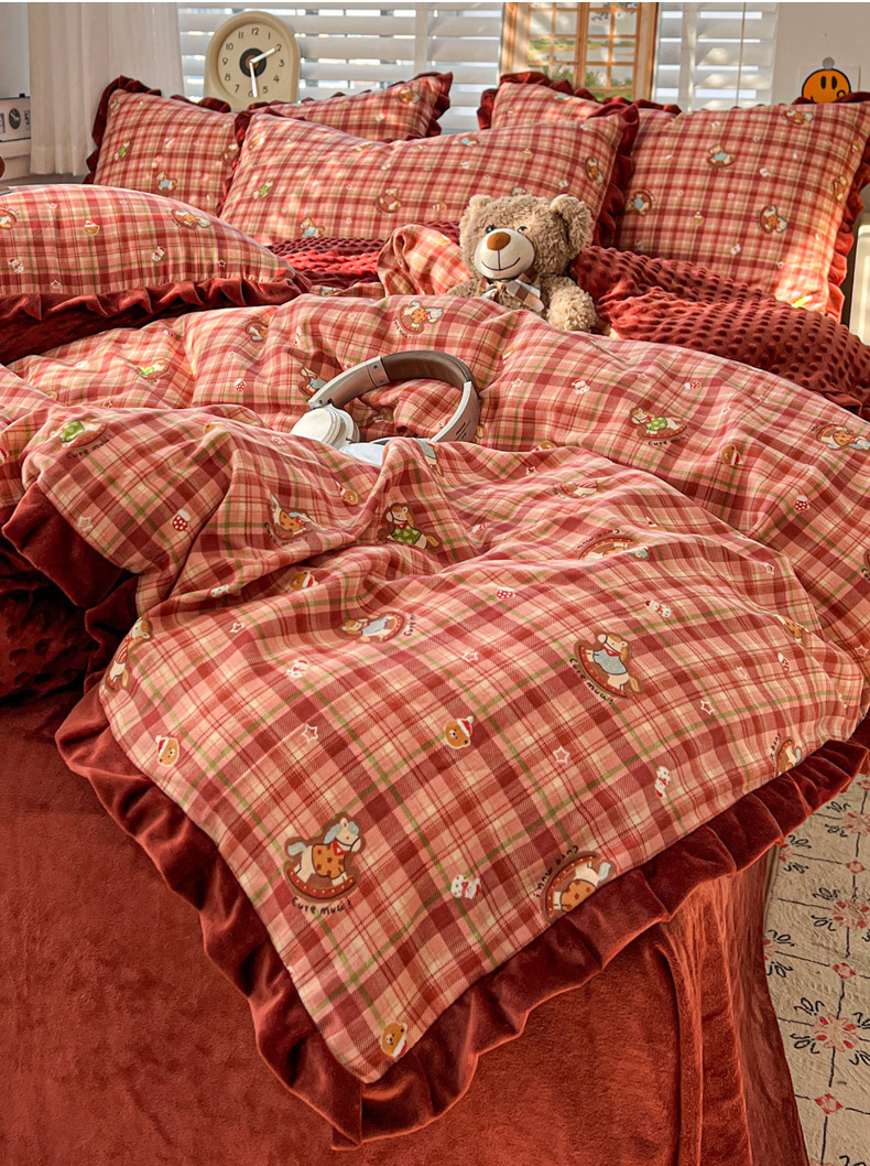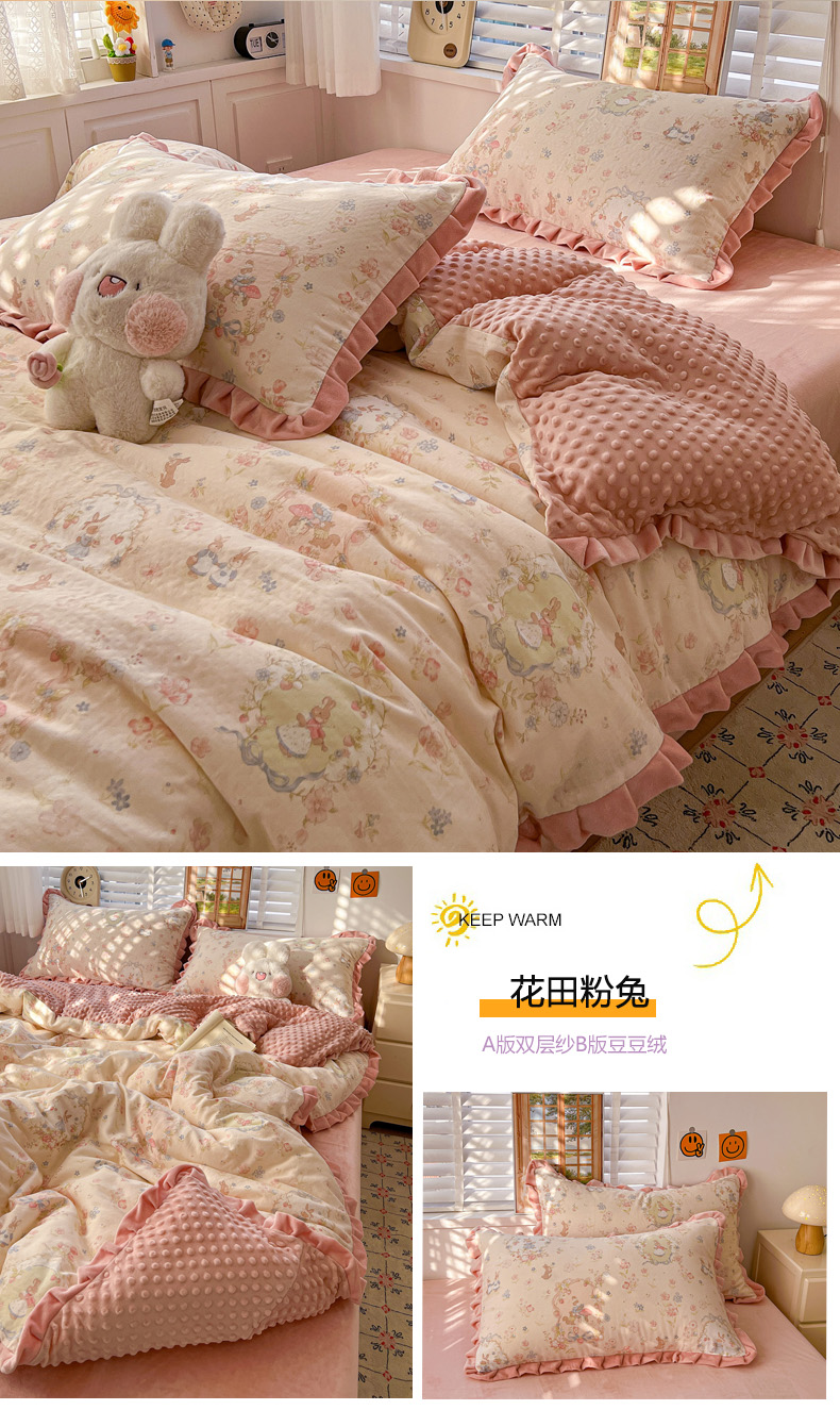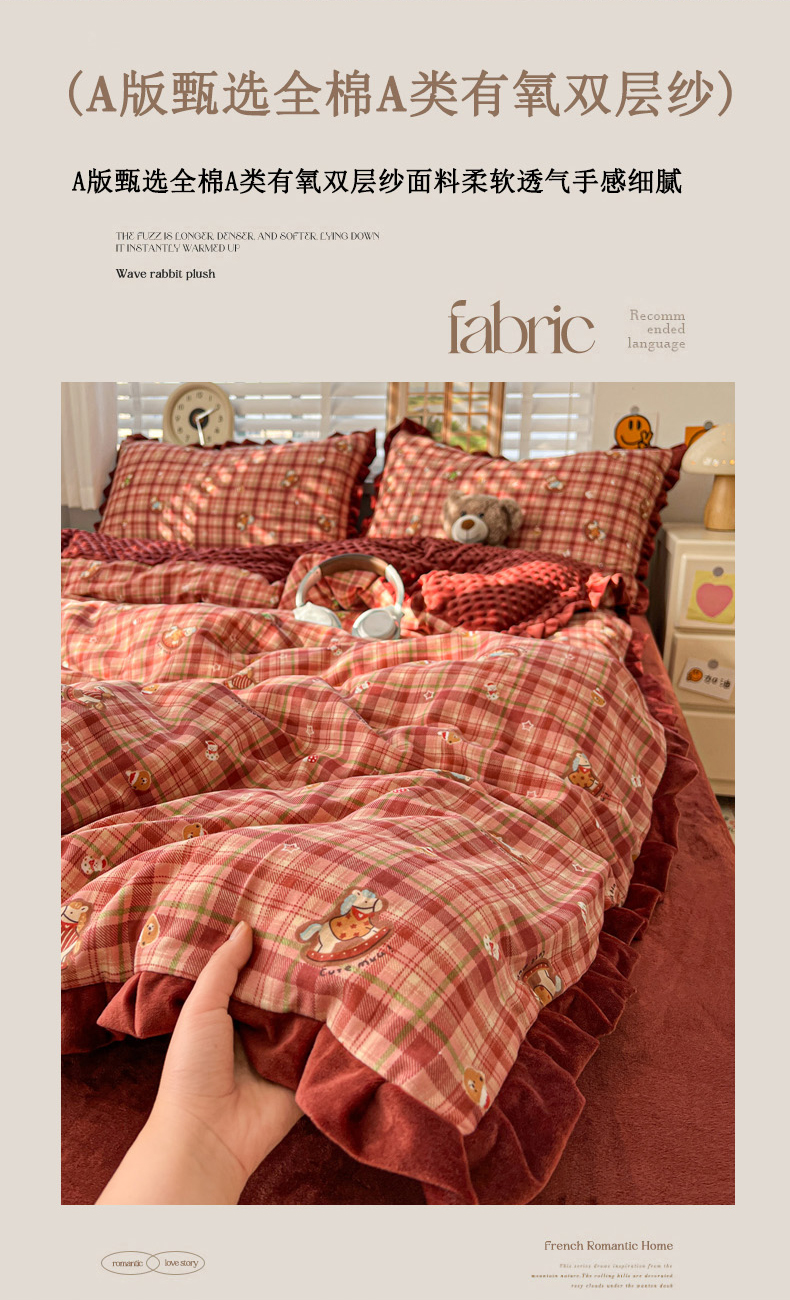 当前位置: 91家纺网 > 商品网购 > 床品套件 > 四件套 > 全棉普通四件套 > 麦伦家居 2025多功能床品全棉纯棉A类有氧双层纱+豆豆绒四件套荷叶边系列 童梦木马