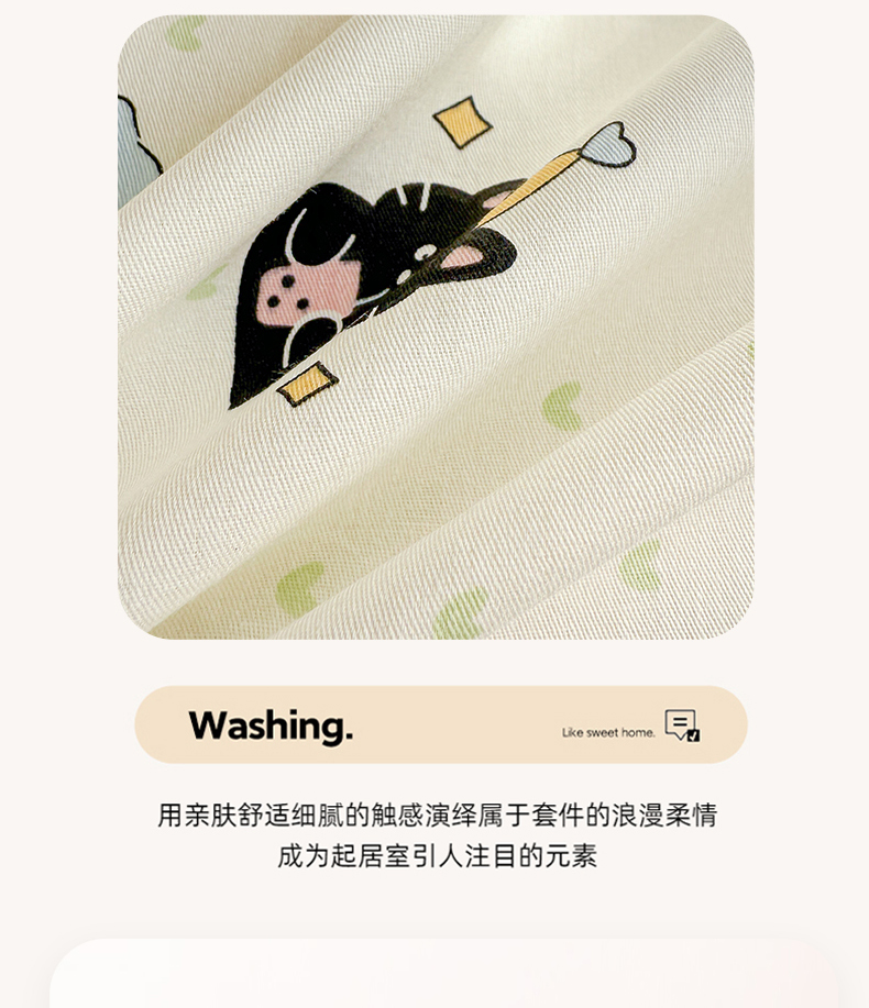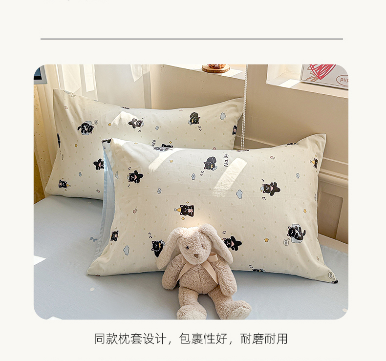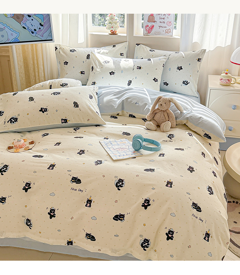 商品名称:曼之夏 2025新款全棉印花四件套-系列二 贪睡猫