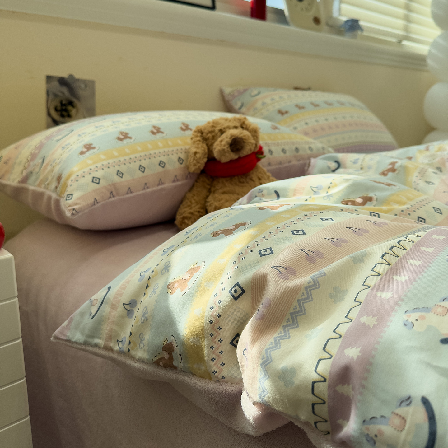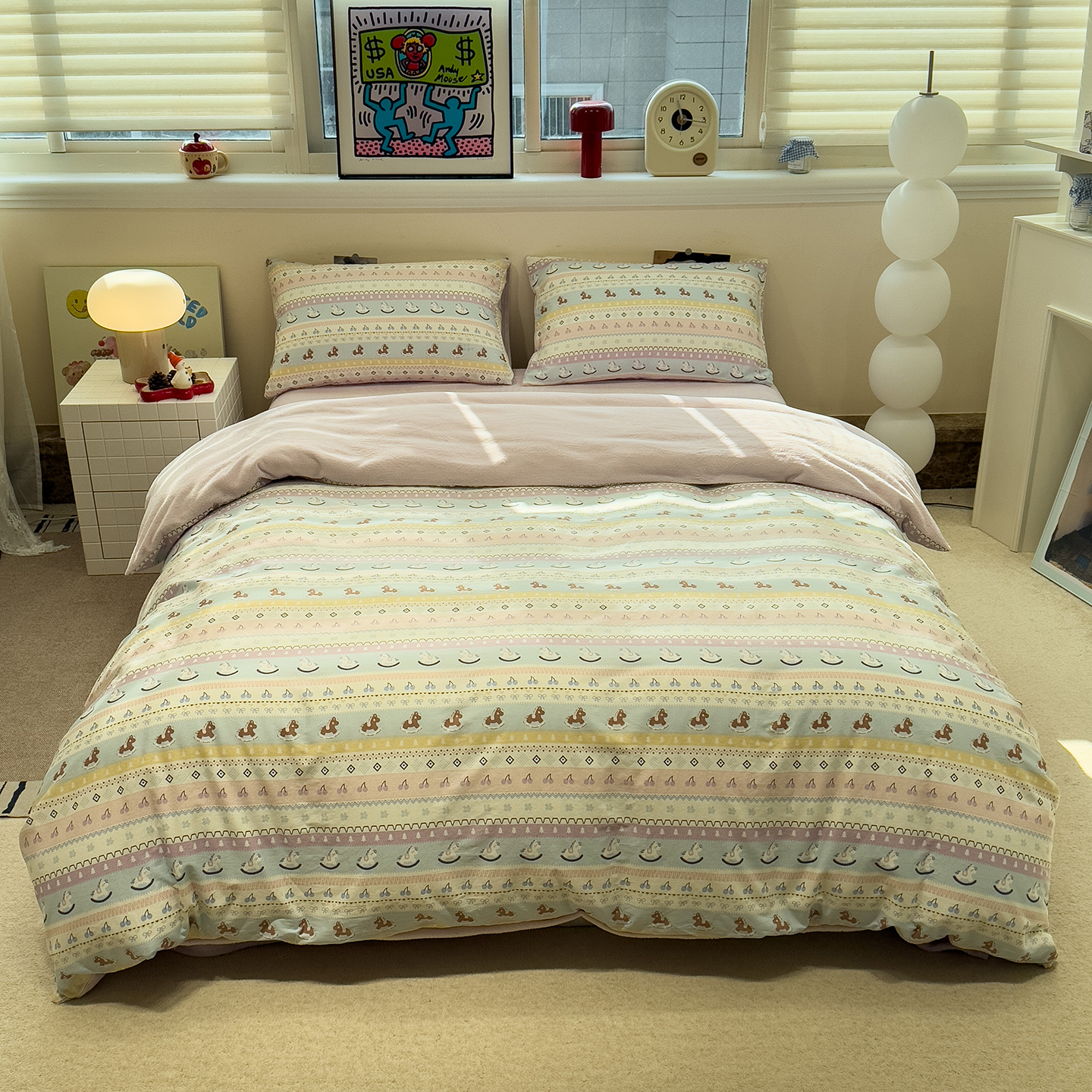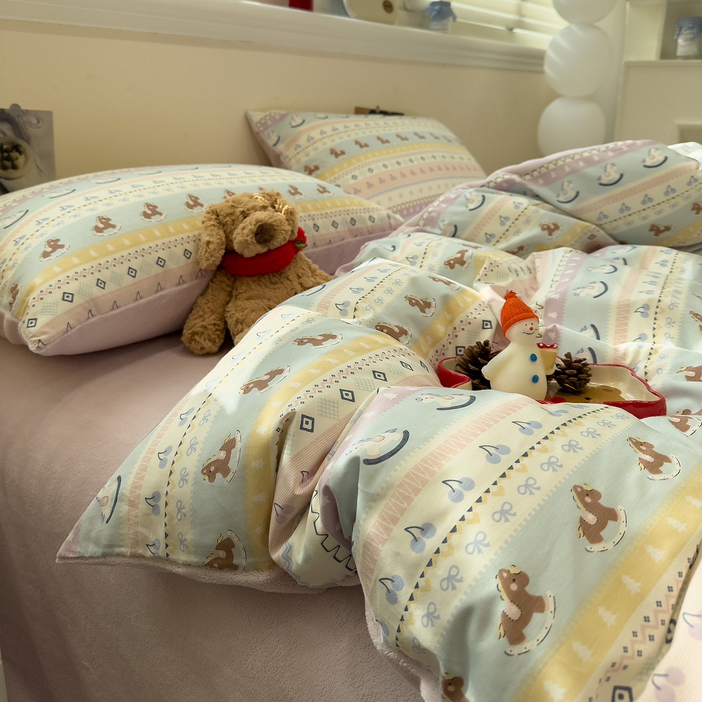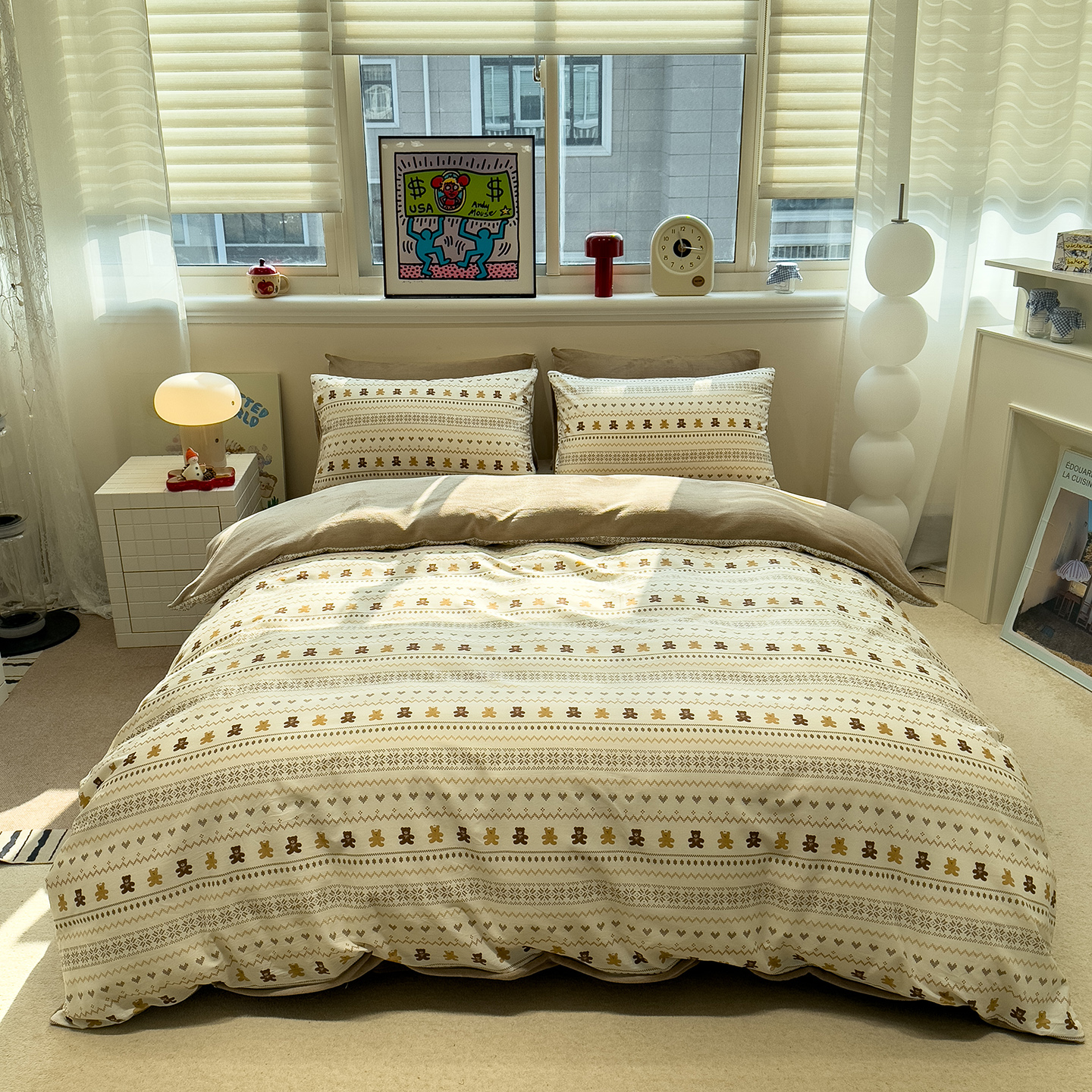 当前位置: 91家纺网 > 商品网购 > 床品套件 > 四件套 > 牛奶绒四件套 > 呗旺鹿 2025新款A版全棉B版牛奶绒四件套 费尔岛小熊