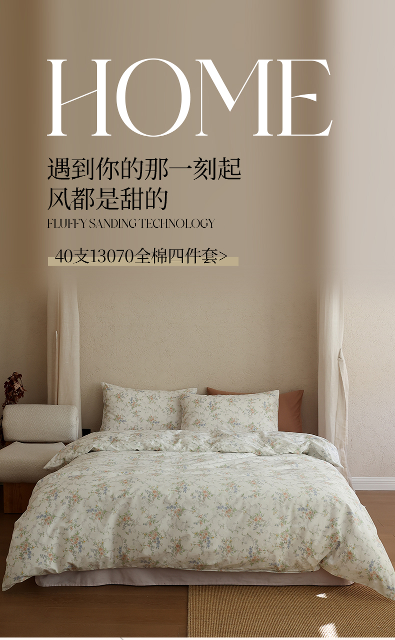 当前位置: 91家纺网 > 商品网购 > 床品套件 > 四件套 > 全棉普通四件套 > 棉眠 2026新款全棉纯棉印花四件套 此间春色
