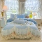 商品名称:苏米娜2025秋冬新款230g法式公主风全消光牛奶绒床裙款四件套纯色蕾丝花边刺绣床盖款四件套 欧若拉-梦幻蓝