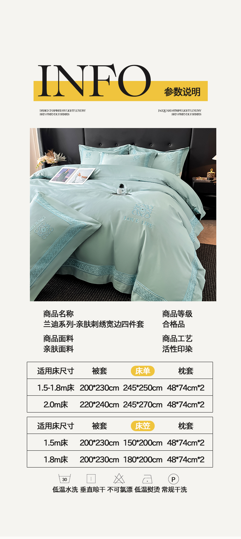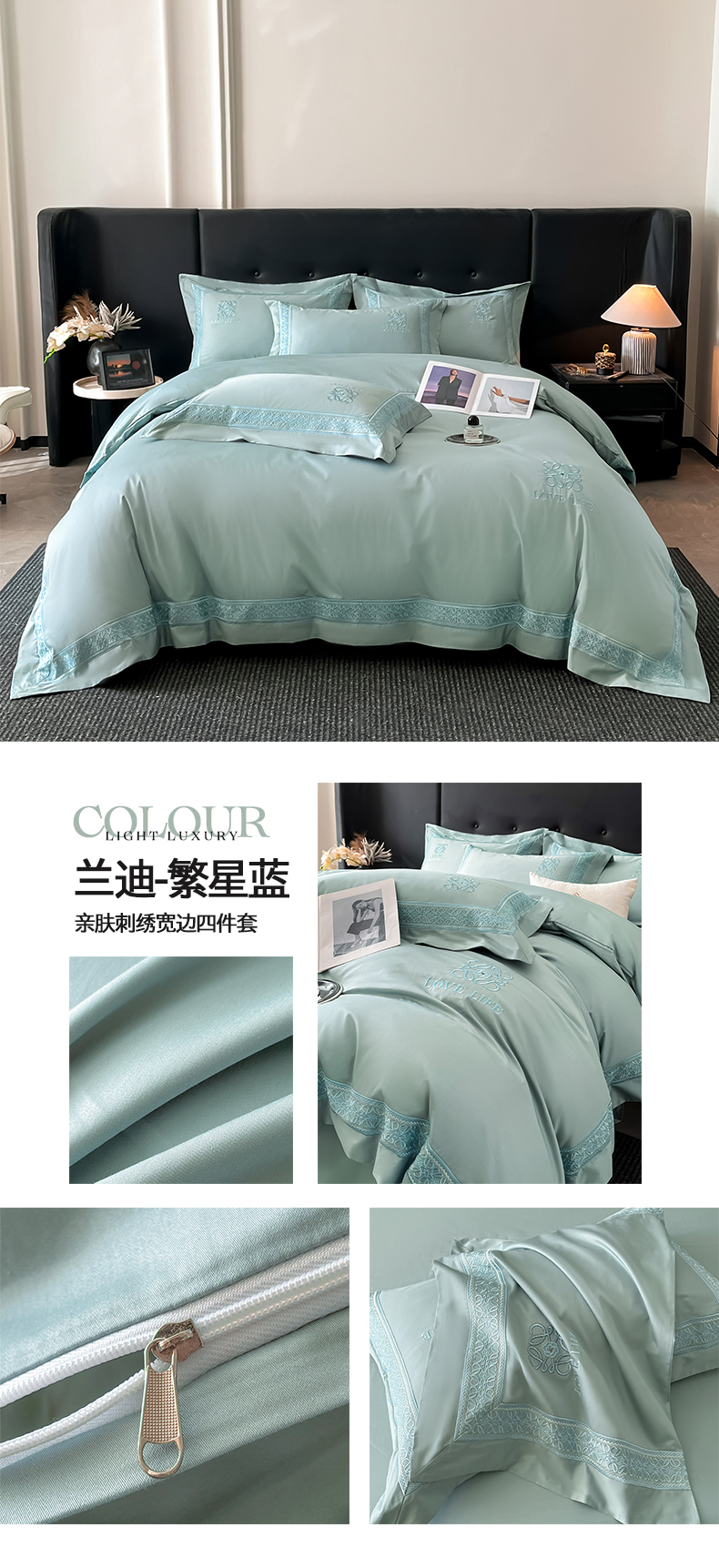 商品名称:(总)置顶家纺 2025新款刺绣亲肤磨毛四件套-兰迪系列