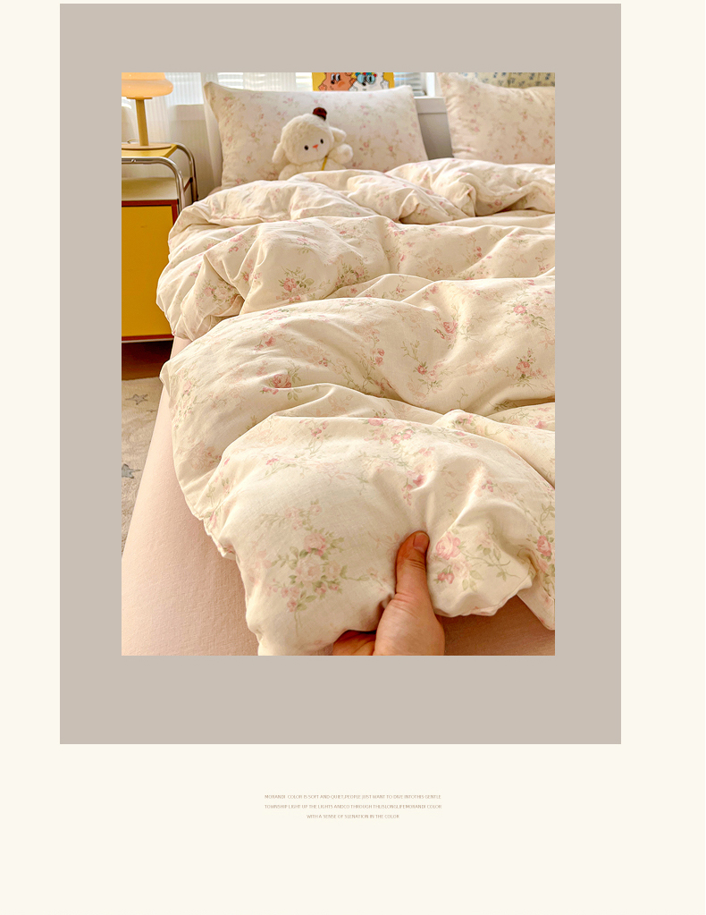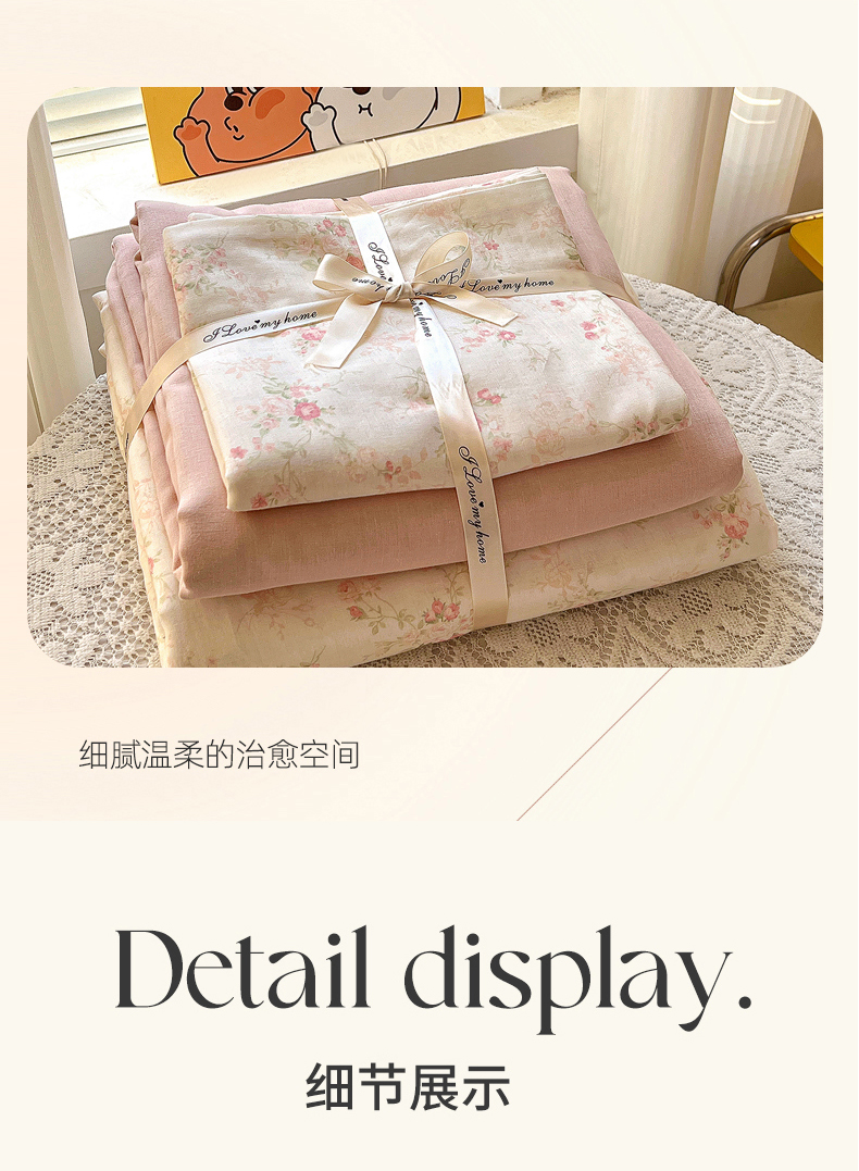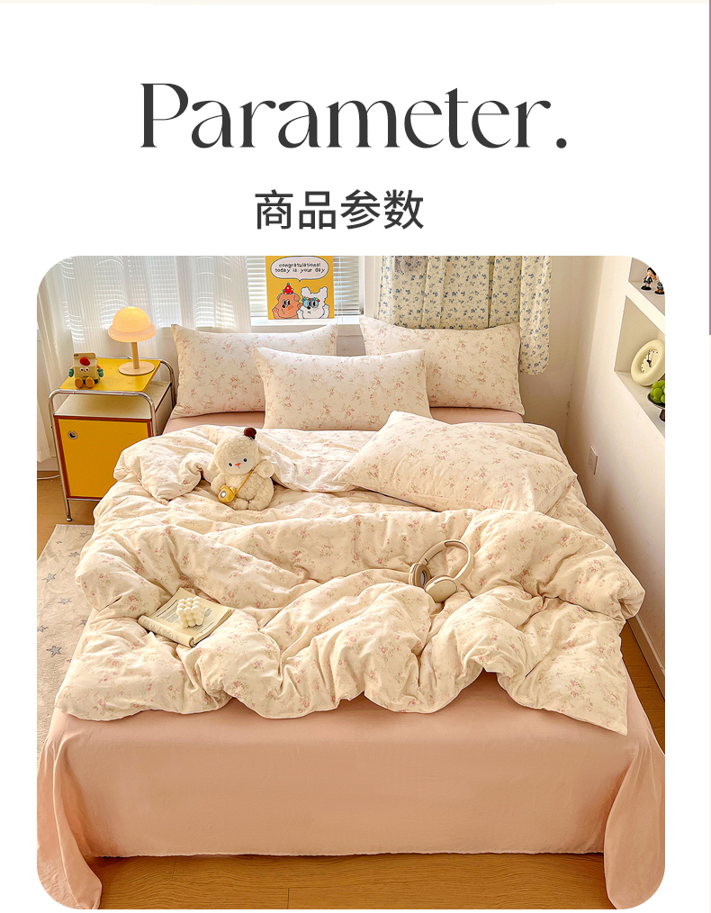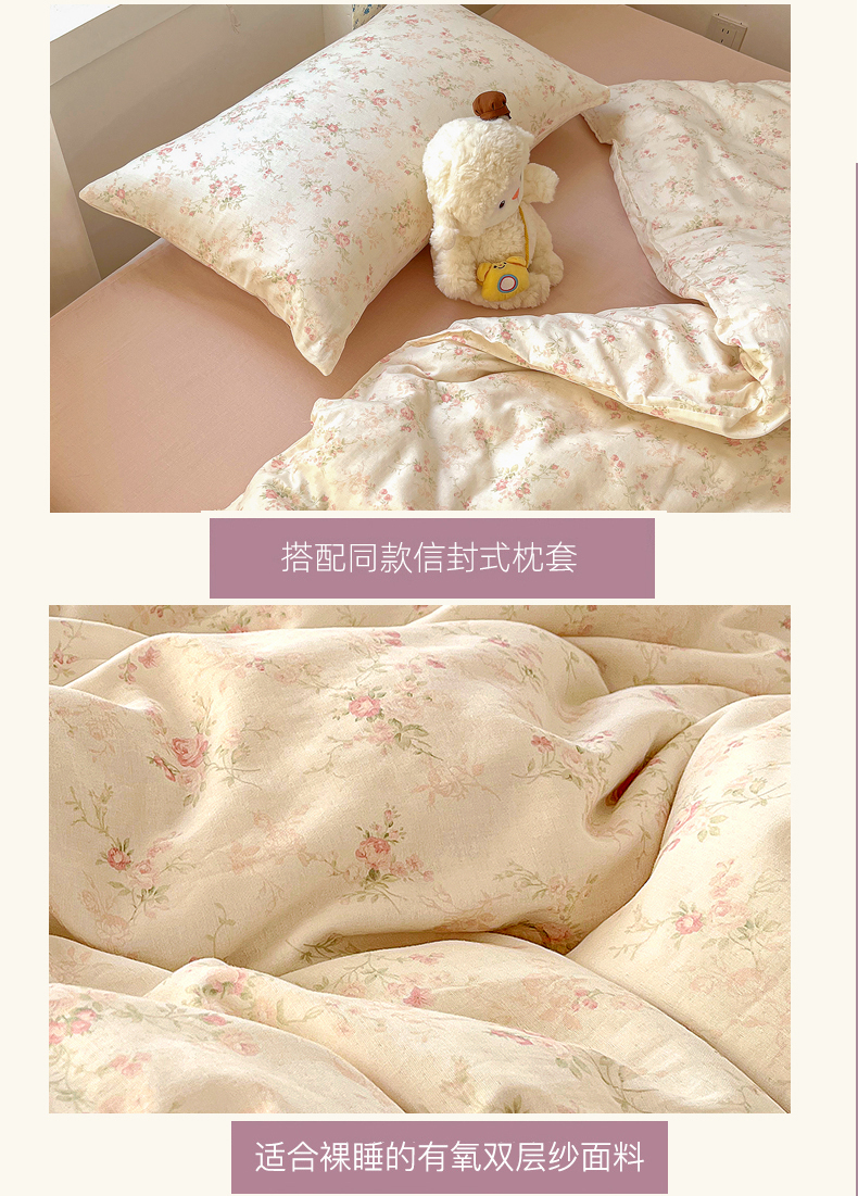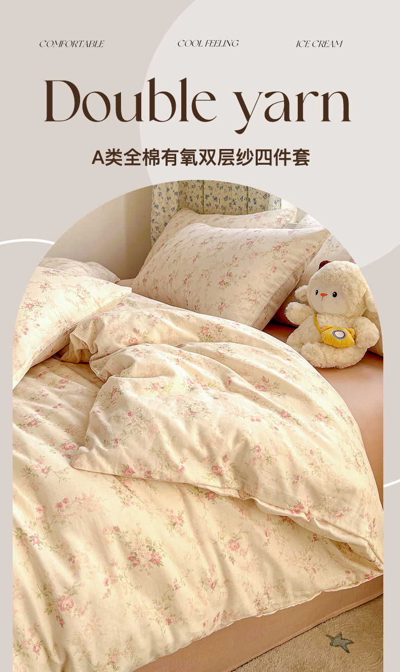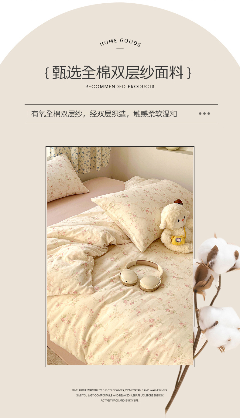 当前位置: 91家纺网 > 商品网购 > 床品套件 > 四件套 > 双层纱四件套 > 麦伦家居 2026春夏新品全棉有氧双层纱印花系列简约款四件套 浅梦 米