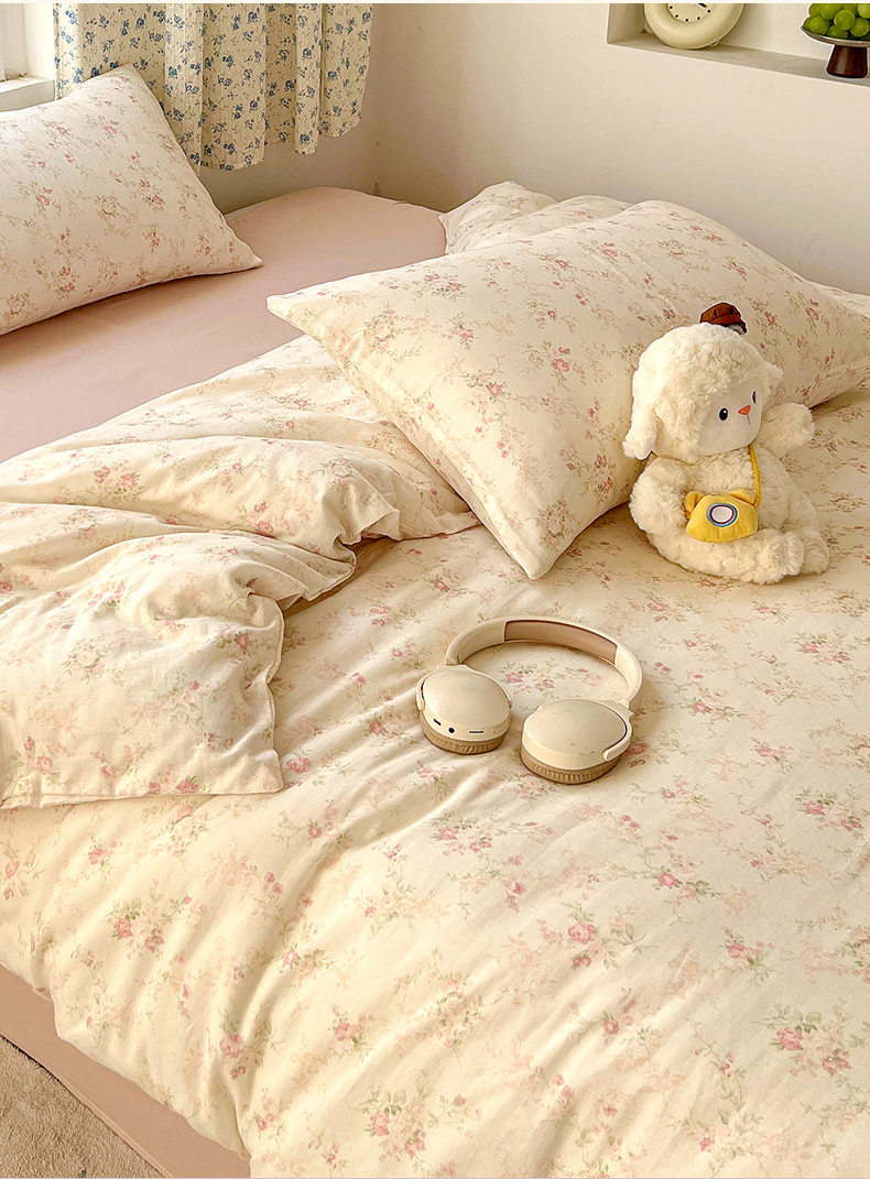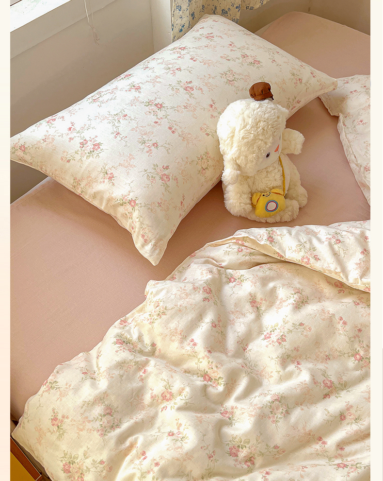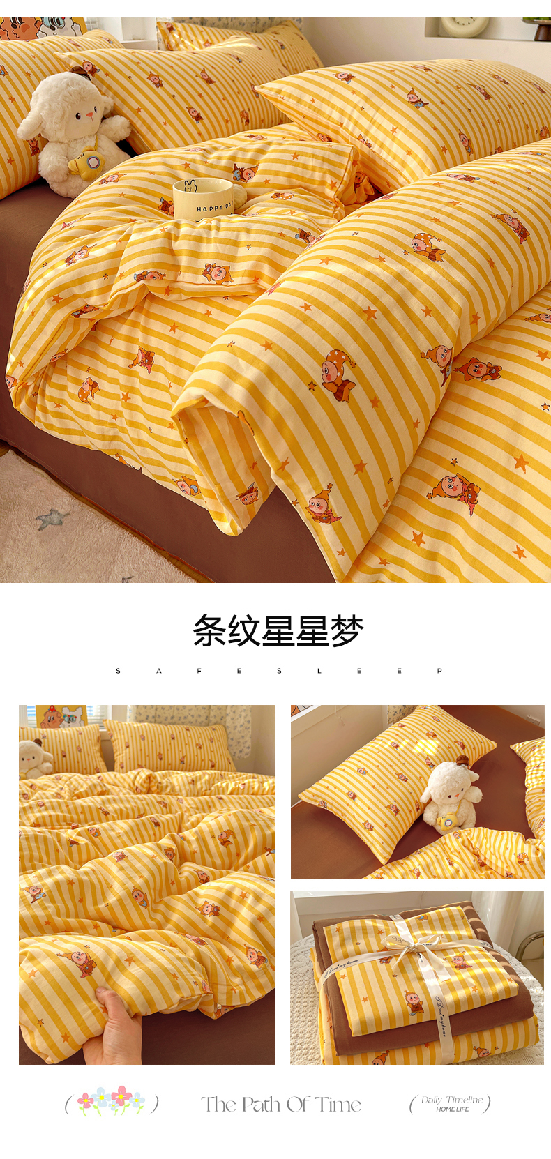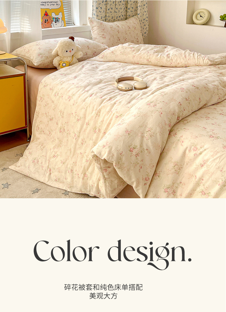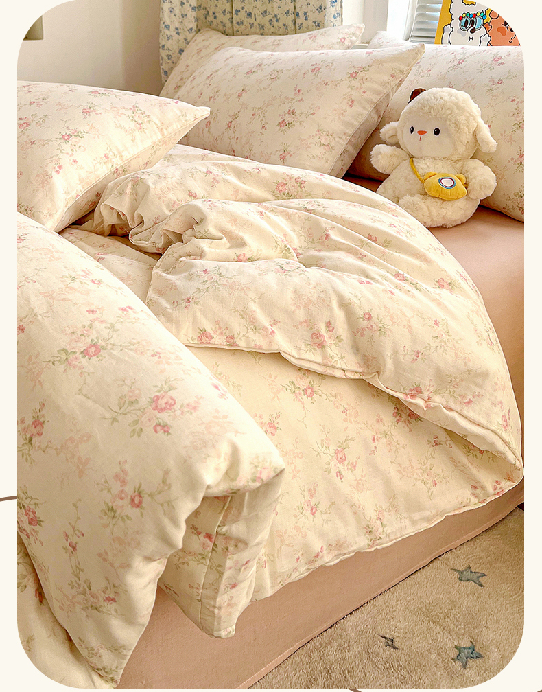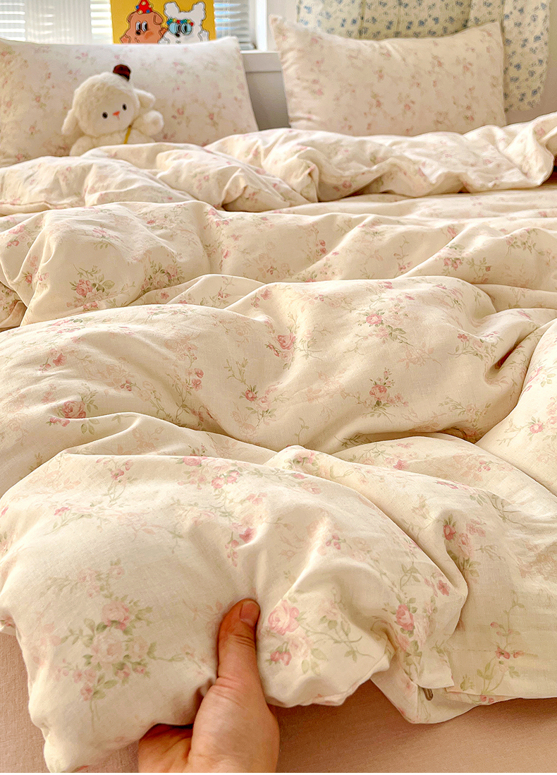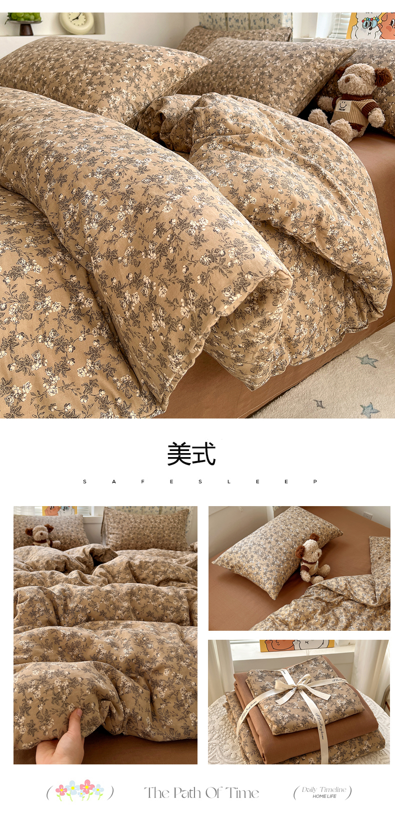 当前位置: 91家纺网 > 商品网购 > 床品套件 > 四件套 > 双层纱四件套 > 麦伦家居 2026春夏新品全棉有氧双层纱印花系列简约款四件套 浅梦 米