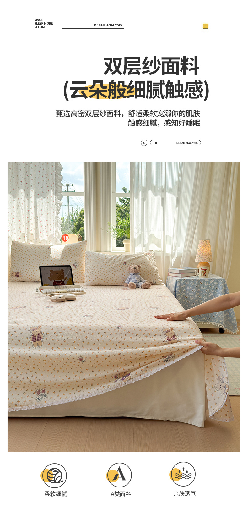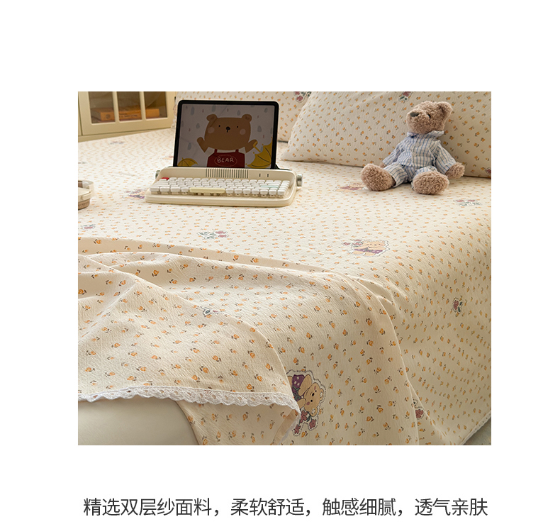 当前位置: 91家纺网 > 商品网购 > 床上用品 > 床单 > 沐芷 2026 【提供买家秀】A类白花边床单单件 单人双人床单三件套 春日小熊