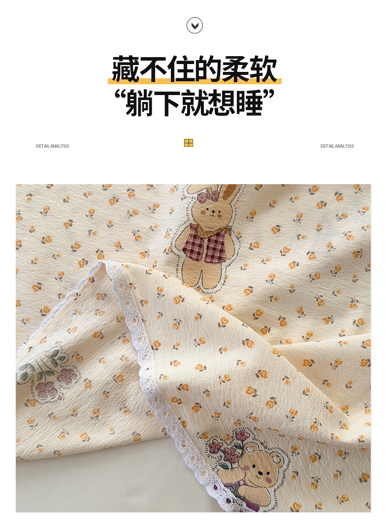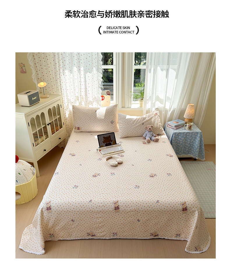 • 91家纺网 家纺一手货源 找家纺 沐芷 2026 【提供买家秀】A类白花边床单单件 单人双人床单三件套 春日小熊