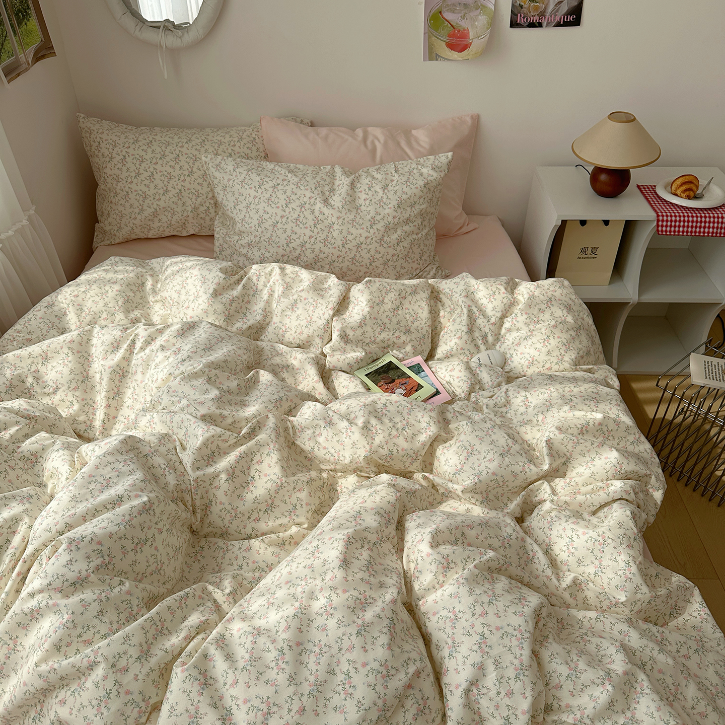当前位置: 91家纺网 > 商品网购 > 床品套件 > 四件套 > 全棉普通四件套 > 尺素 2026田园小清新纯棉四件套出口韩国ins博主风全棉被套纯色加大床单1.8床笠印花枕套学生宿舍三件套 春不晚 桃粉