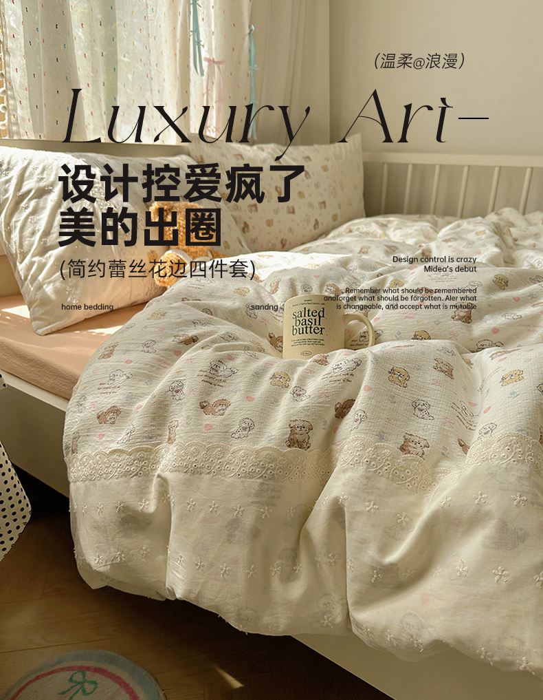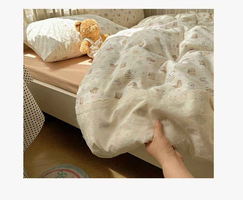 当前位置: 91家纺网 > 商品网购 > 床品套件 > 四件套 > 其它四件套 > 沐芷 2026 【提供买家秀】宽花边四件套公主风A类双层纱床上用品三件套被套床笠 宽花边-奶萌小狗