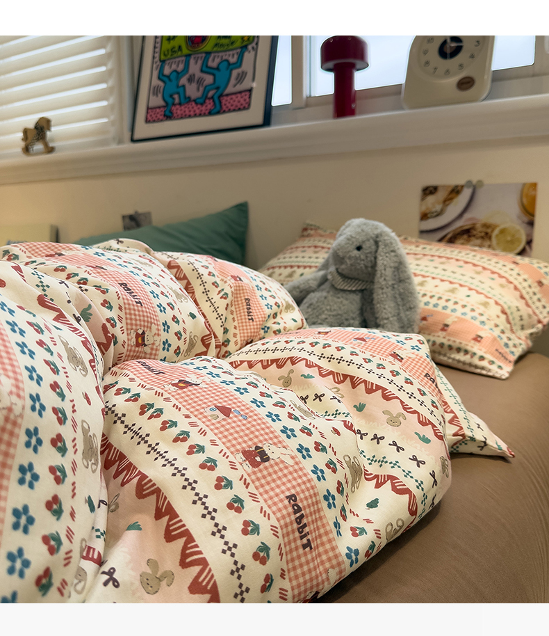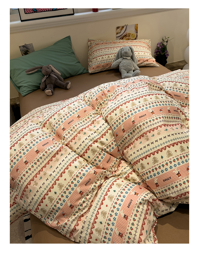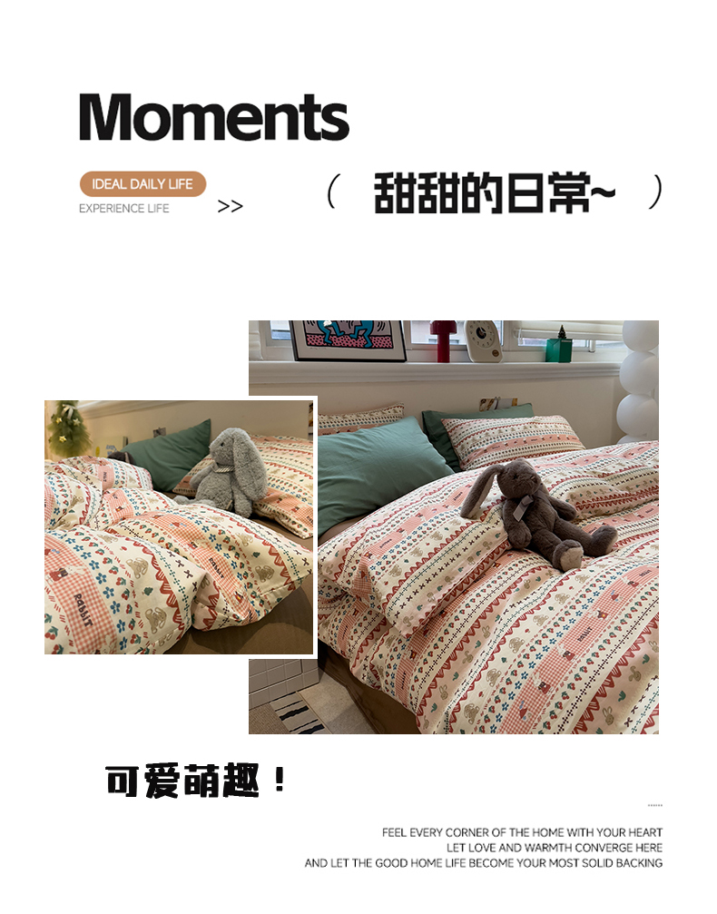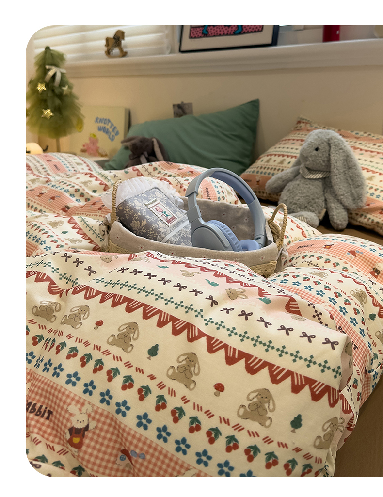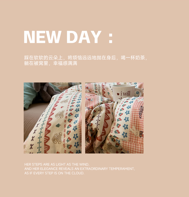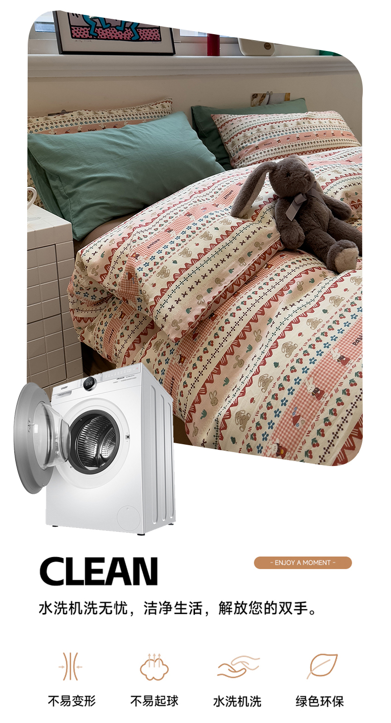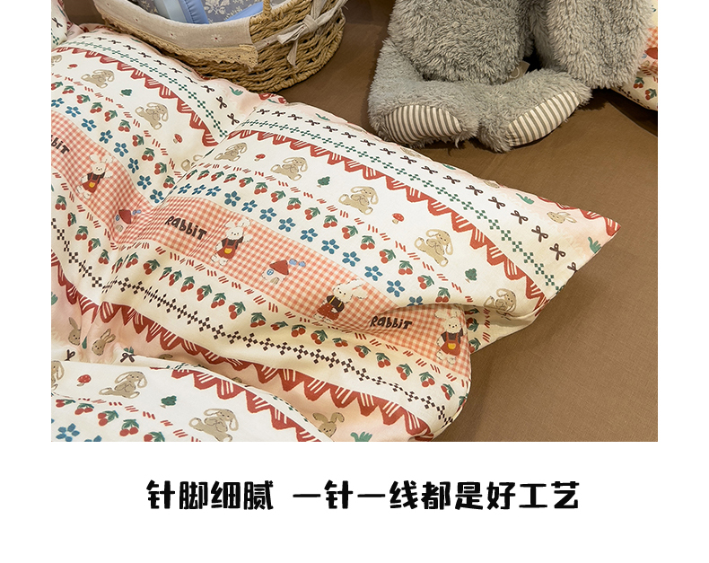 (总)呗旺鹿 2026新款全棉40支12868田园卡通小清新系列四件套,雅柔,蓝叶兔,软糖萌宠,三小只,童话乐园,小熊艺语,樱桃小象,H萝卜兔,L红茶兔兔,L欧包小奶兔,L浅糖兔叽