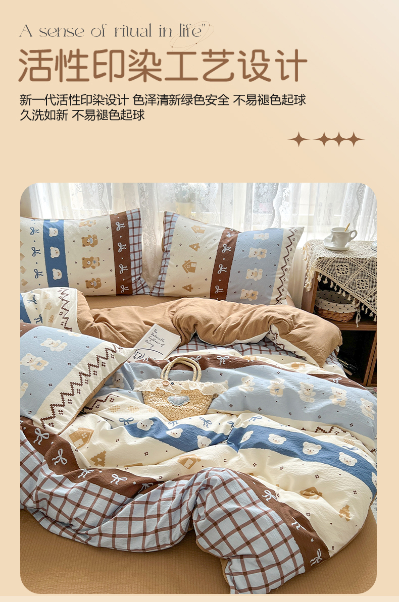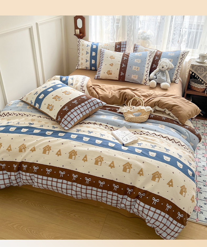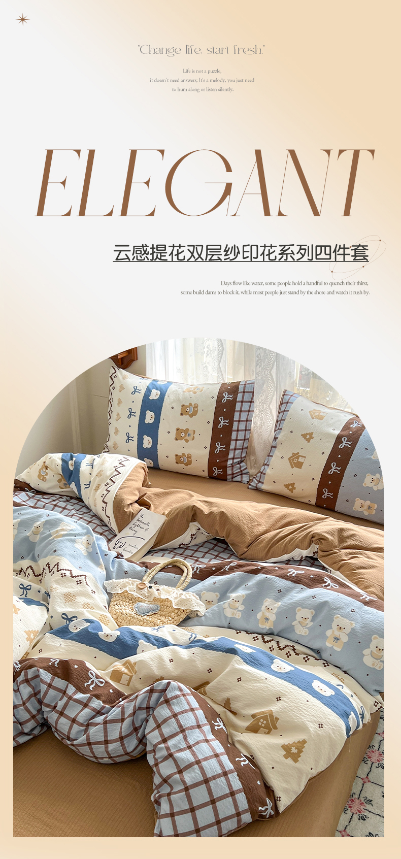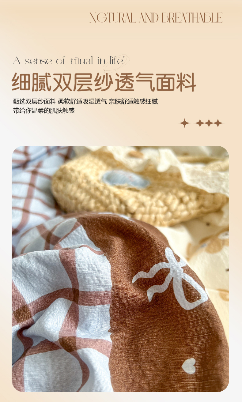 当前位置: 91家纺网 > 商品网购 > 床品套件 > 四件套 > 其它四件套 > 妖妖家纺 2026新款敲可爱的奶呼呼云感双层纱简约四件套系列 费尔岛小熊