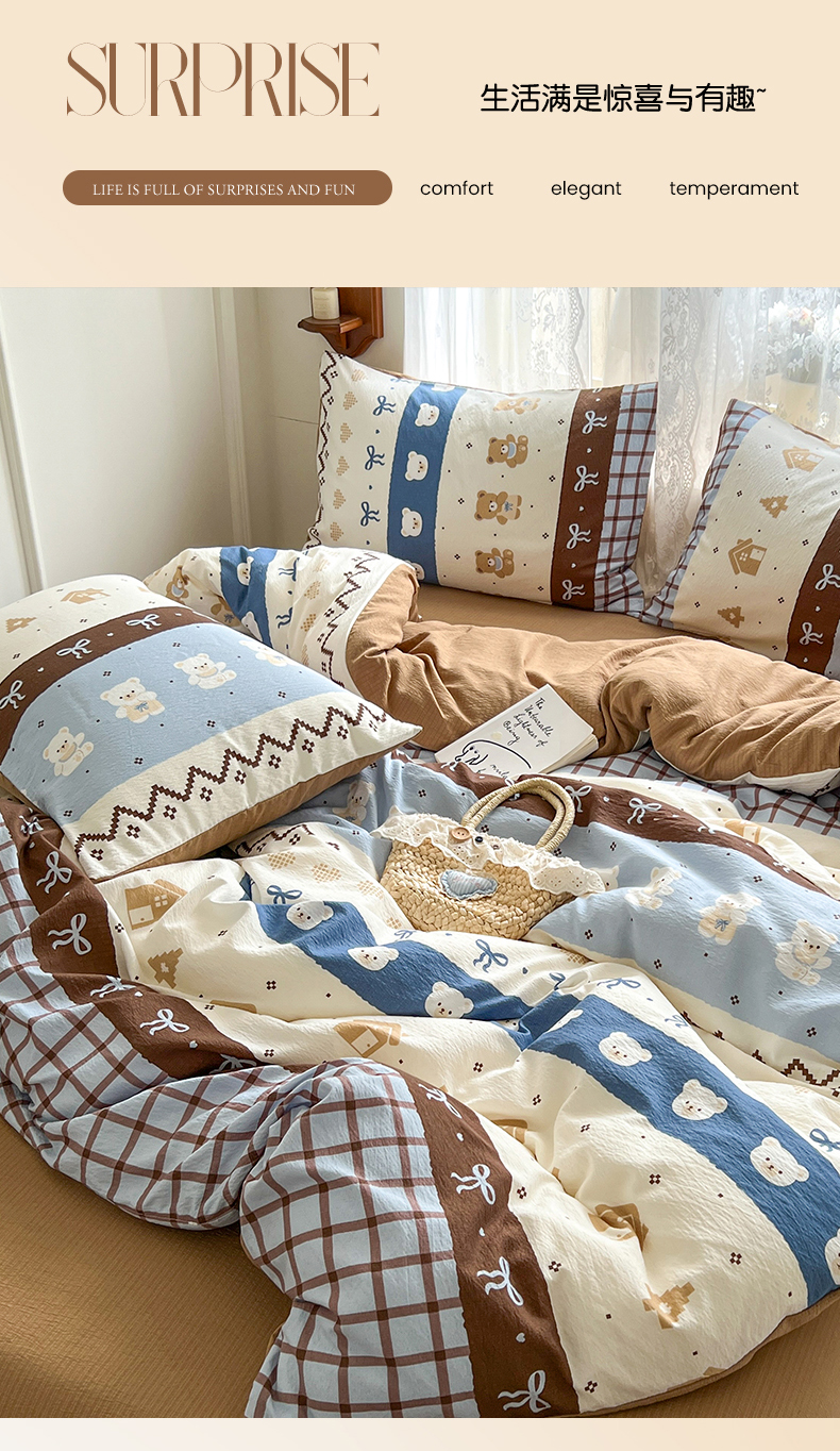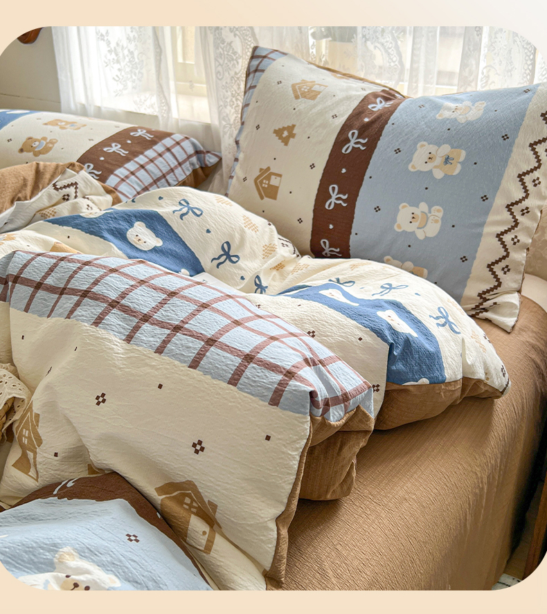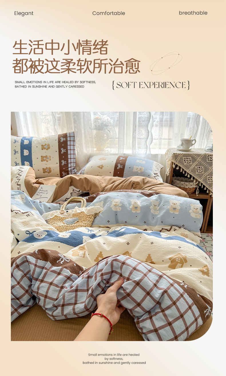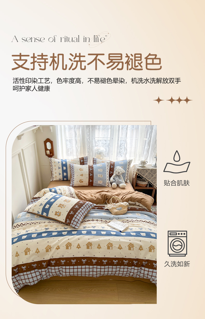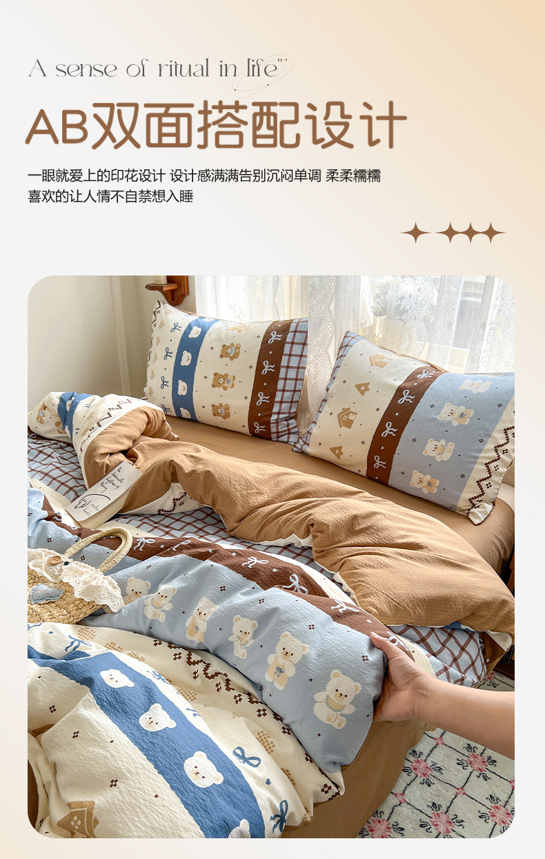 当前位置: 91家纺网 > 商品网购 > 床品套件 > 四件套 > 其它四件套 > 妖妖家纺 2026新款敲可爱的奶呼呼云感双层纱简约四件套系列 费尔岛小熊