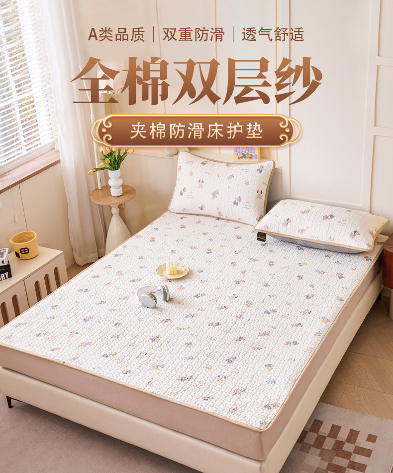 (总)拾小柒 2025年新款全棉双层纱床护垫纯棉防滑床盖床褥子软床垫,爱丽丝花园,彩色杯黄,春色满园,格子狗米,七彩童年,山野小咖,忘忧草咖,英文象蓝