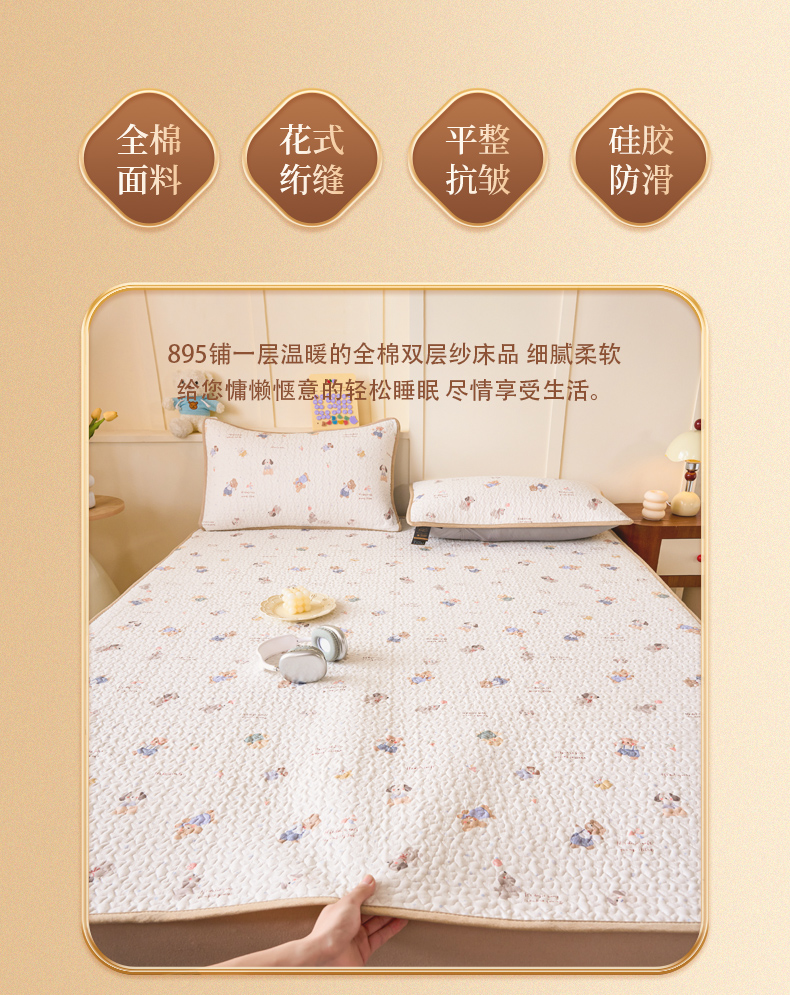 (总)拾小柒 2025年新款夹棉防滑床盖绗缝褥子床垫保护垫,糯糯棉-高西地,糯糯棉-马戏团,糯糯棉-香肠狗,糯糯棉-竹子熊猫,糯糯棉-天使熊