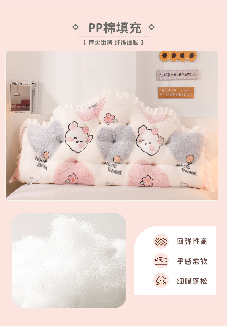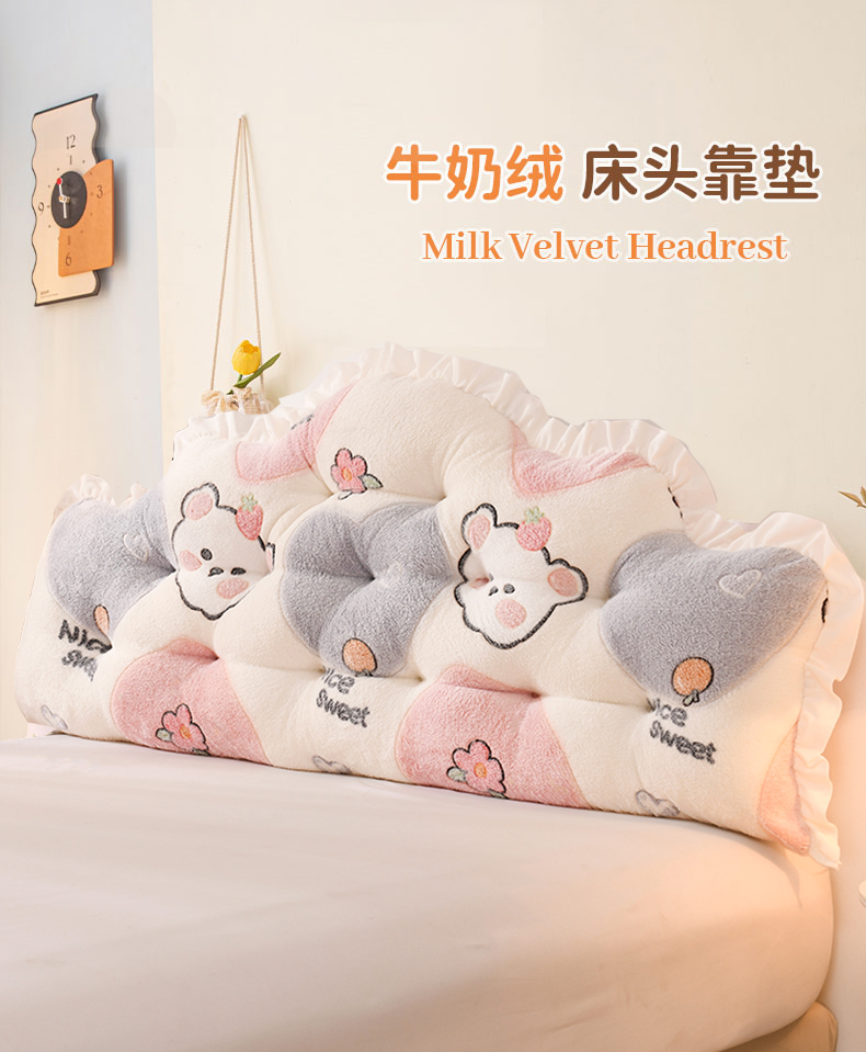 (总)碧尔 2025新款可爱儿童床头靠垫学生卧室客厅沙发飘窗榻榻米软包靠背床上靠枕双排扣直条机械钉扣牛奶绒,草莓小花,棕色小熊,芋泥啵啵