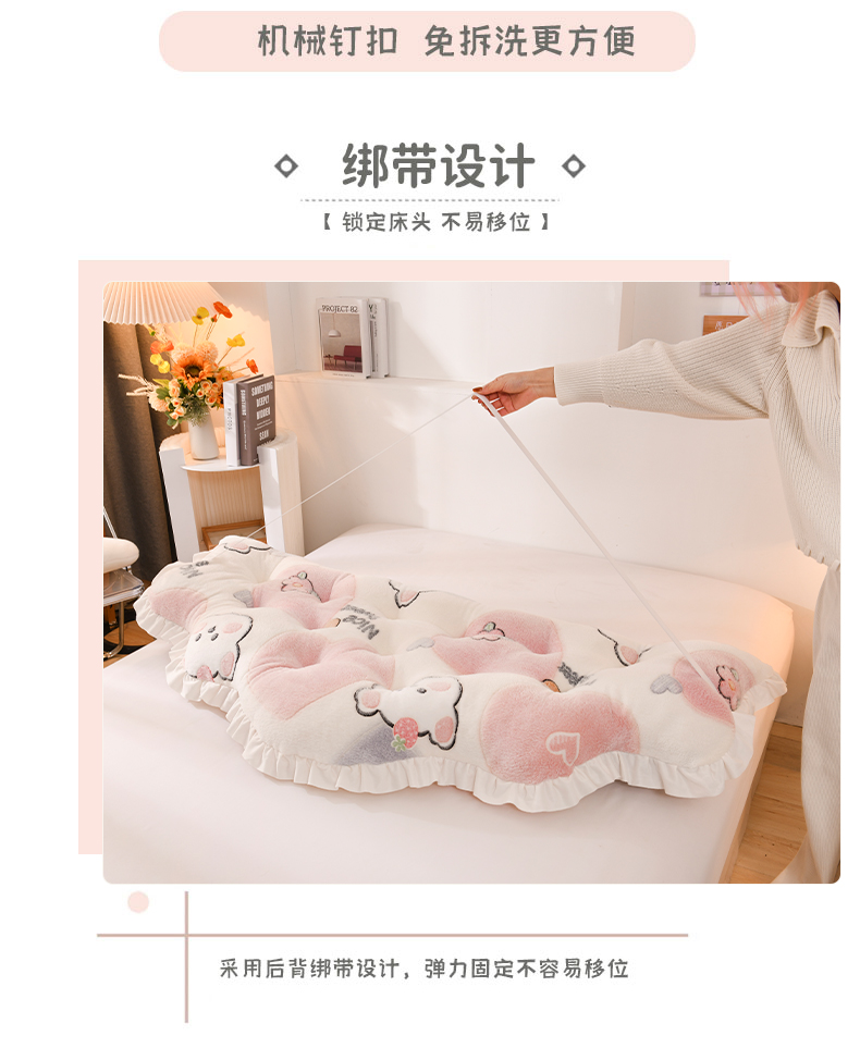 (总)碧尔家居 2025新款荷兰绒弯型三角+头枕床头靠背,奶咖,天蓝,香槟,樱花粉
