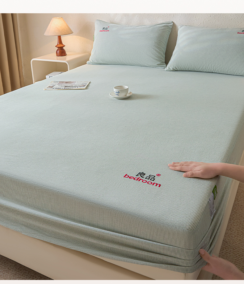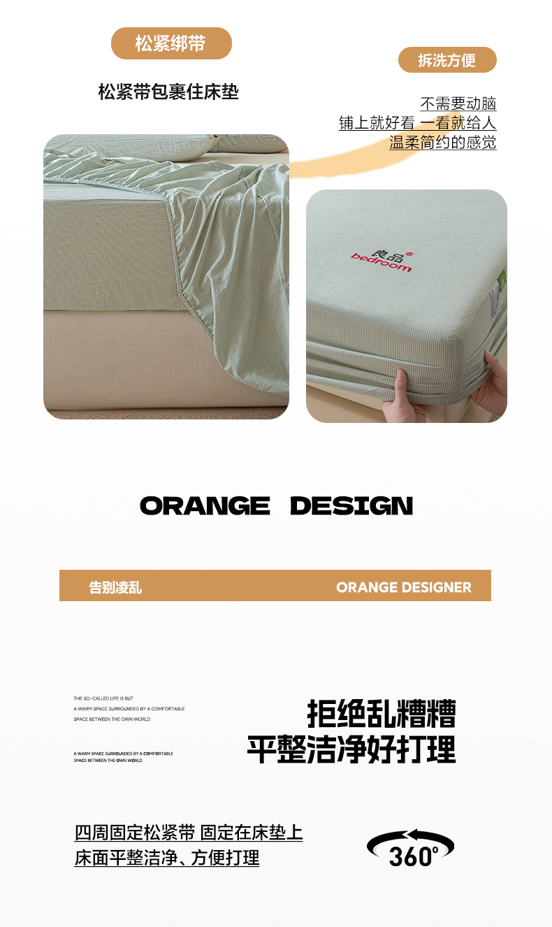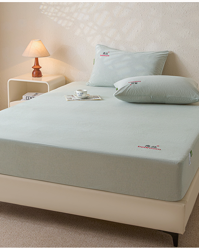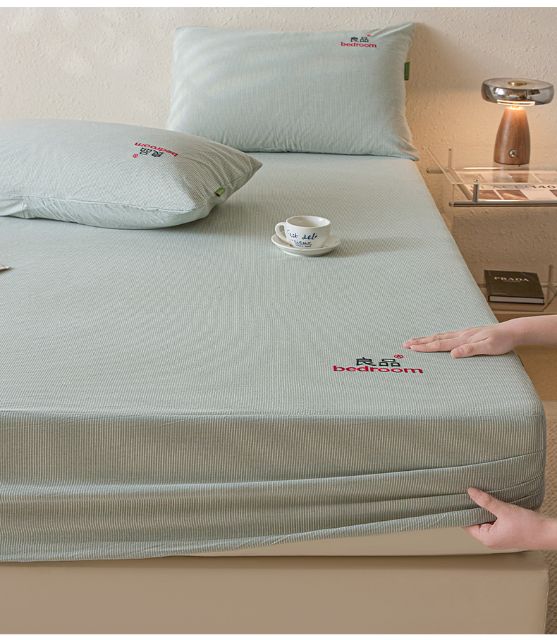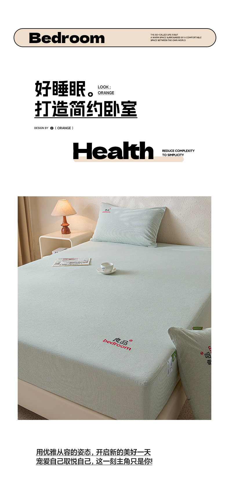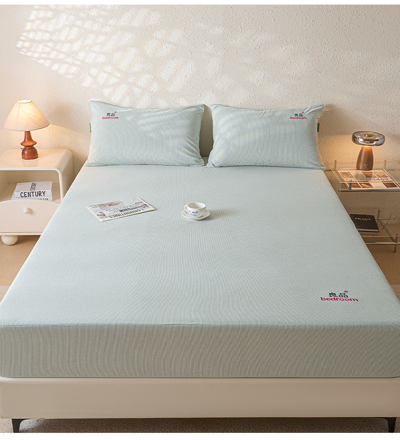 芬晴家纺 2026新款纯棉密条+纯色单层床笠 条纹-果绿