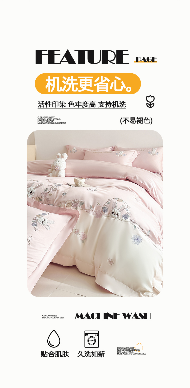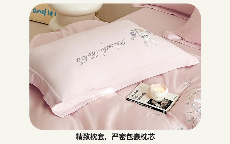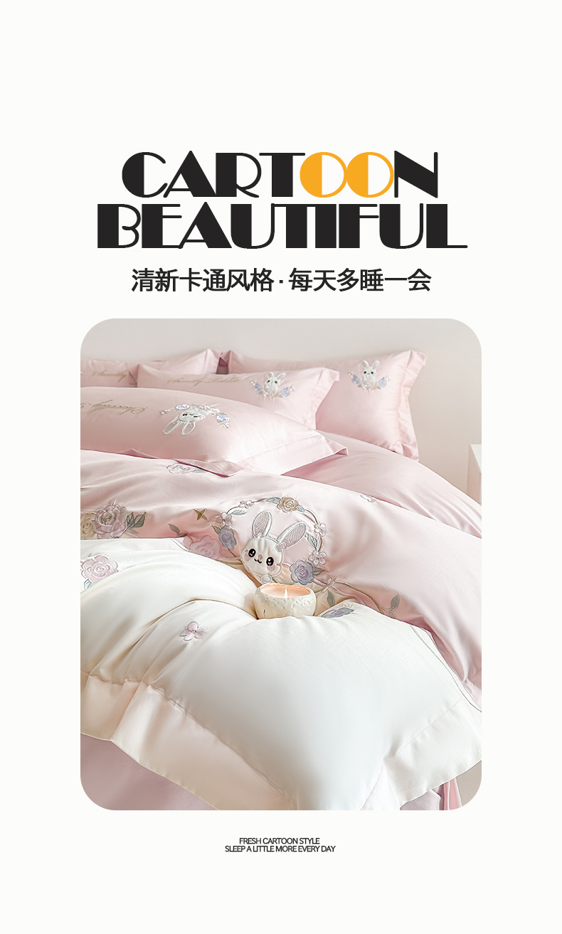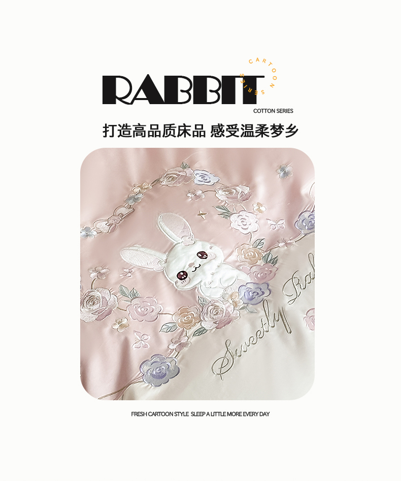 当前位置: 91家纺网 > 商品网购 > 床品套件 > 四件套 > 全棉普通四件套 > (总)置顶家纺 2026新款比心兔系列全棉长绒棉拼接绣花四件套