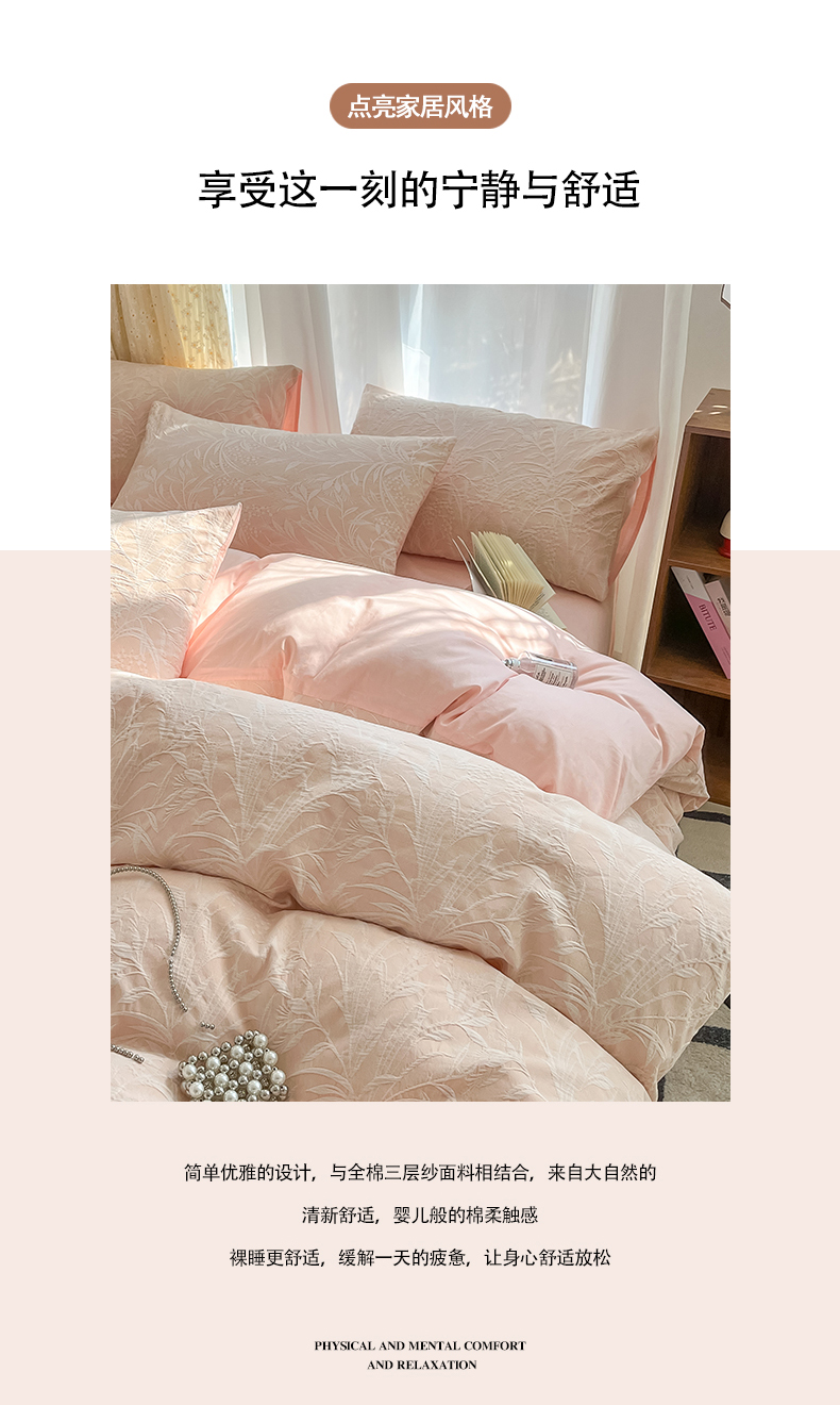 当前位置: 91家纺网 > 商品网购 > 床品套件 > 四件套 > 全棉普通四件套 > 琪格格纺织 2026新款60s纯棉加厚三层纱系列四件套 三层纱 芳草 粉玉