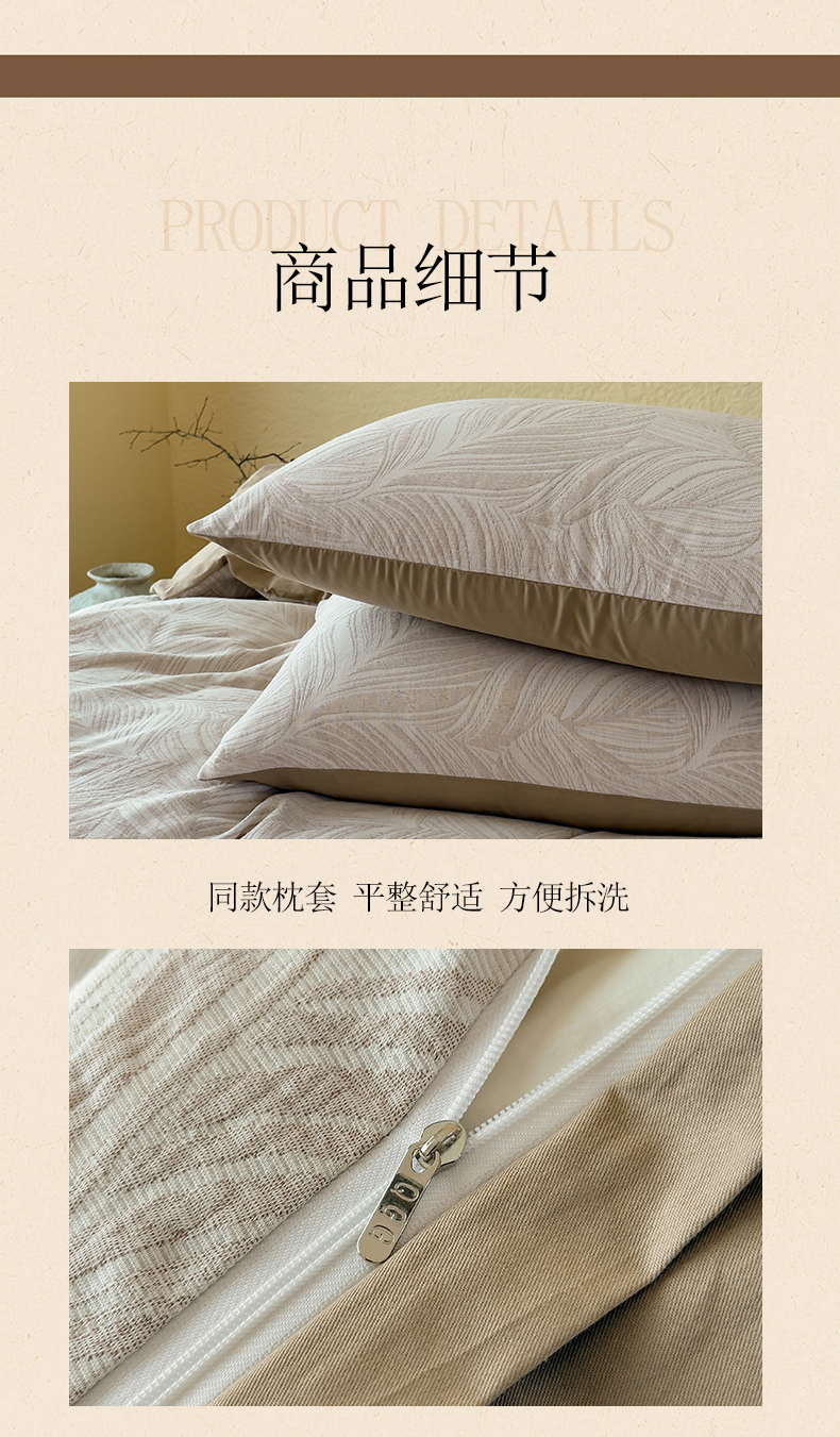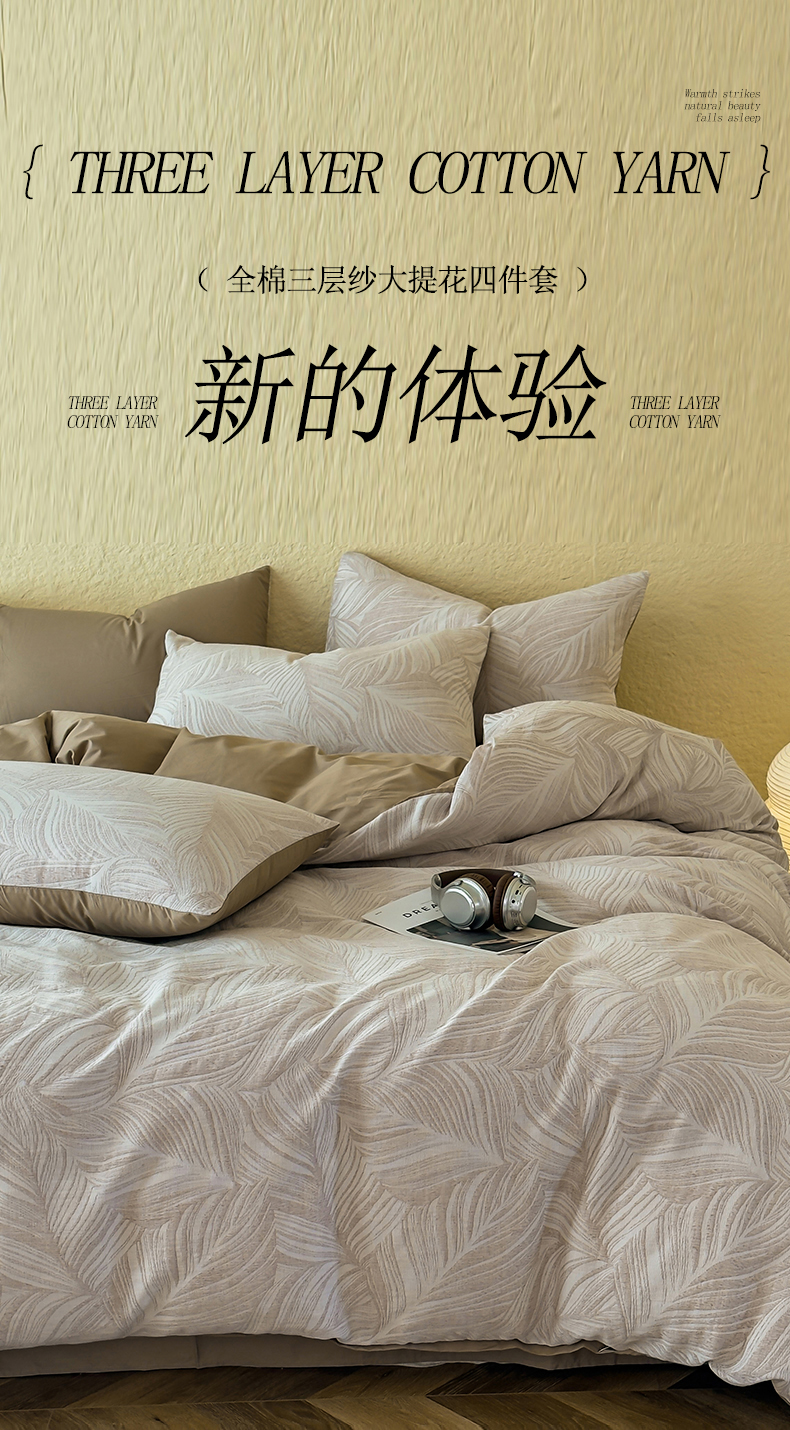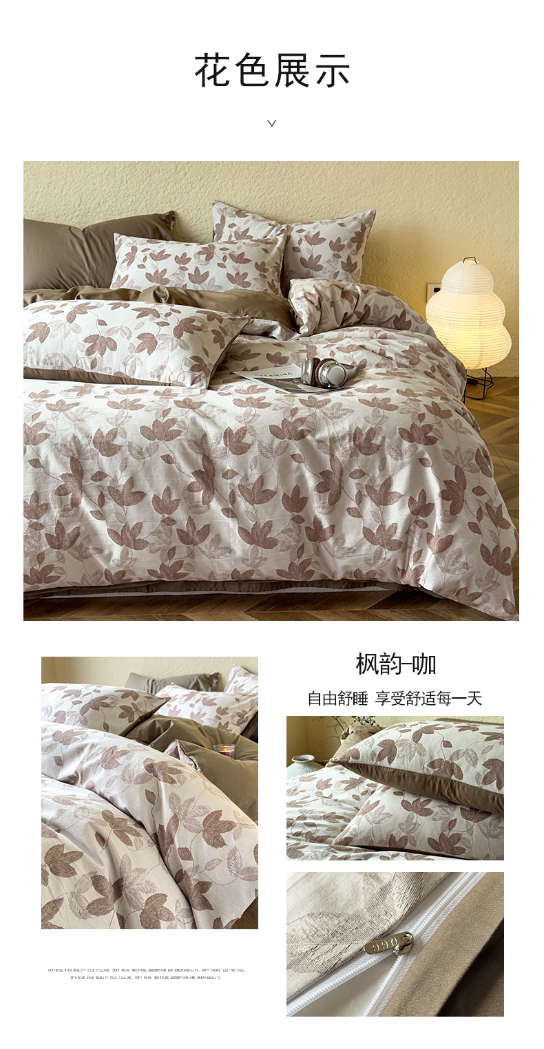 当前位置: 91家纺网 > 商品网购 > 床品套件 > 四件套 > 全棉普通四件套 > 琪格格纺织 2026新款60s纯棉加厚三层纱系列四件套 三层纱 叶舞