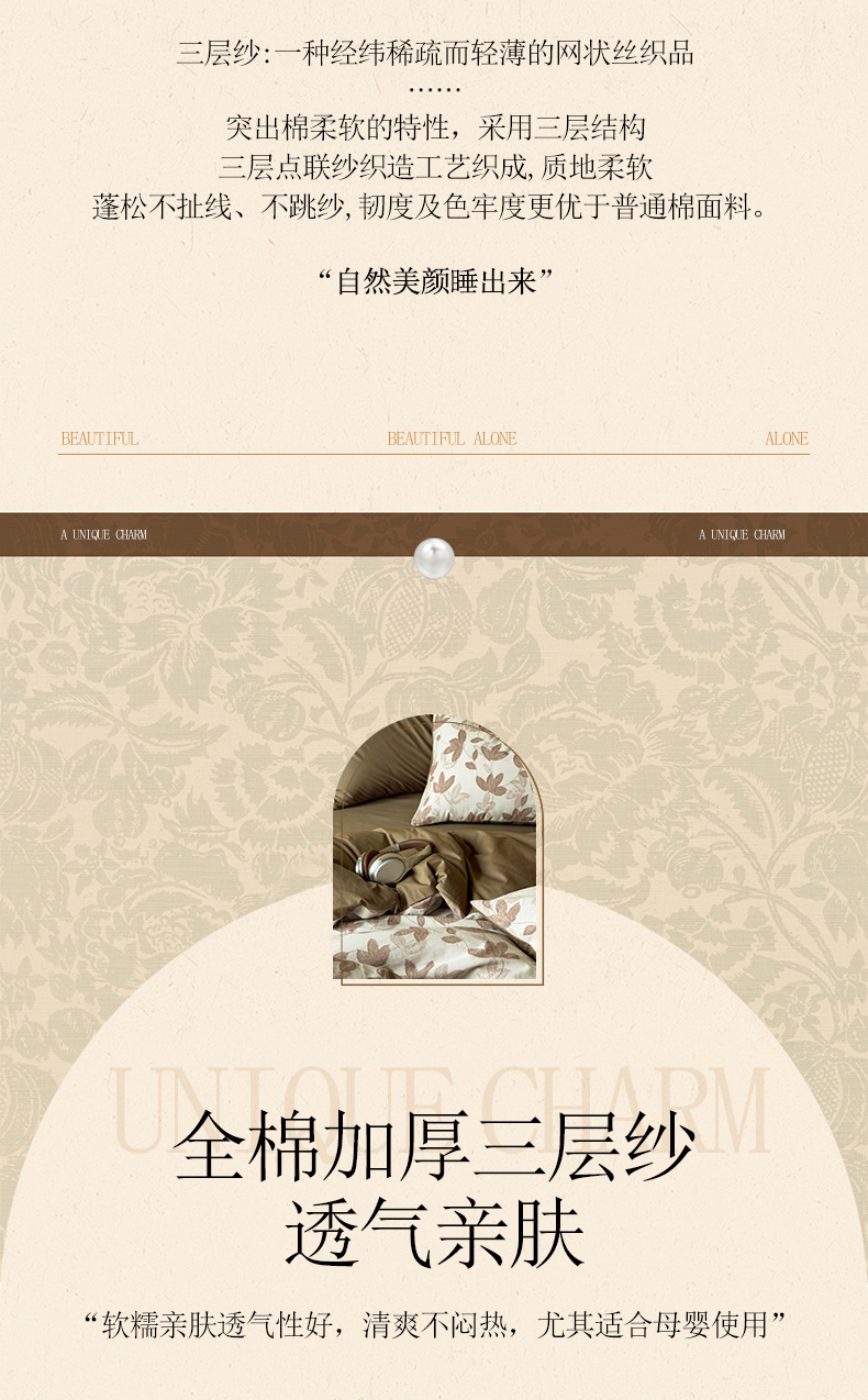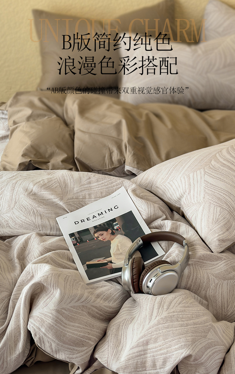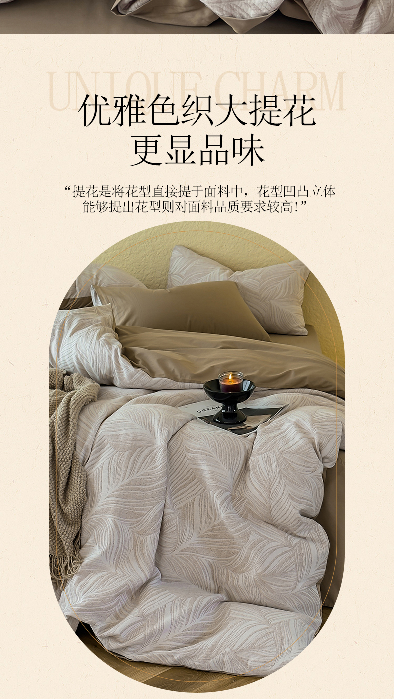当前位置: 91家纺网 > 商品网购 > 床品套件 > 四件套 > 全棉普通四件套 > 琪格格纺织 2026新款60s纯棉加厚三层纱系列四件套 三层纱 叶舞