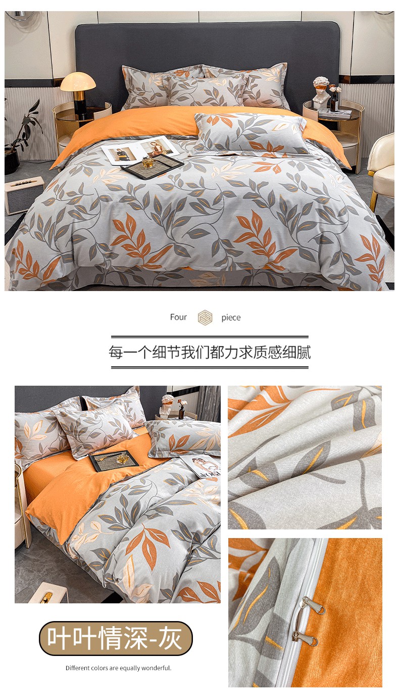 商品名称:凌鼎 2025新款100%全棉磨毛四件套数码印花加厚纯棉磨毛四件套 叶叶情深灰