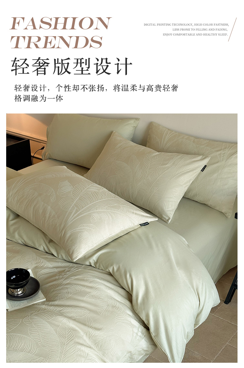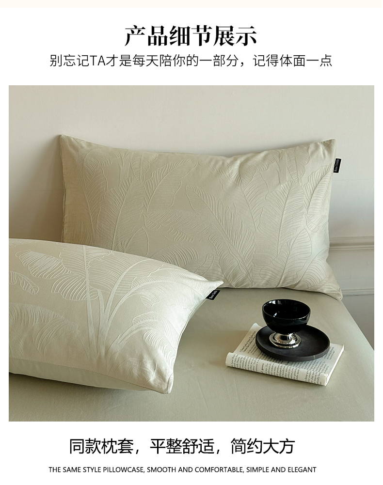 商品名称:卧趣家纺 2026新款A类60S贡缎提花全棉四件套 蕉野-奶绿