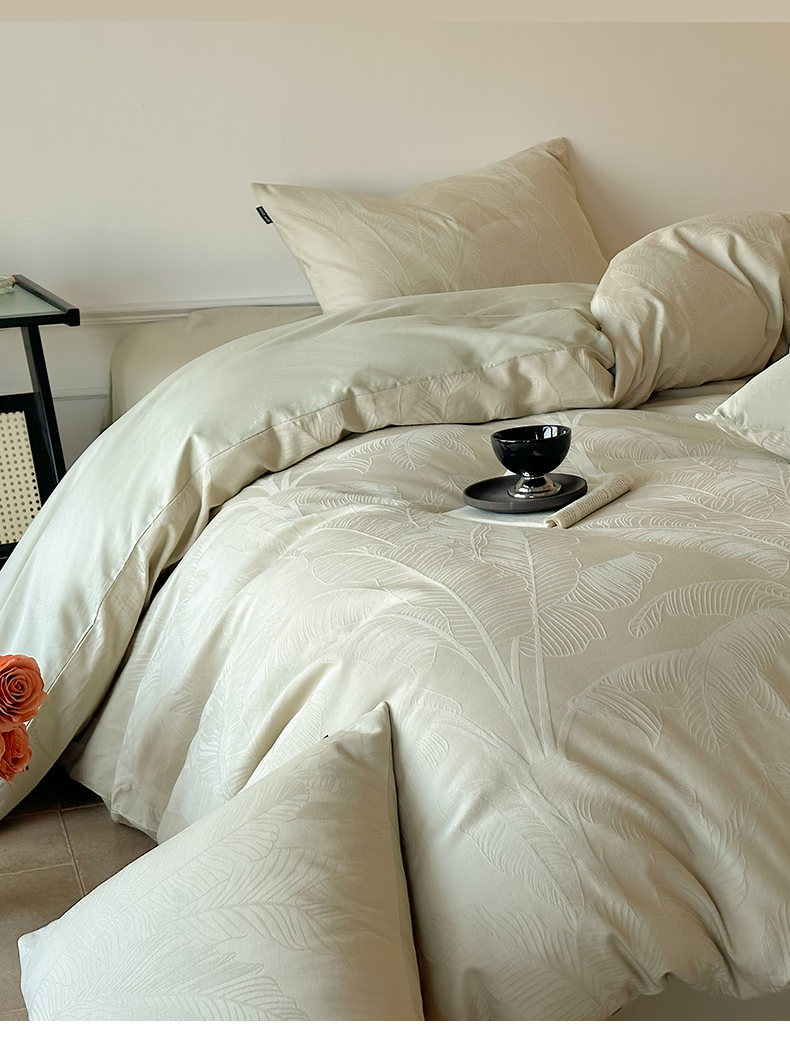 卧趣家纺 2026新款A类60S贡缎提花全棉四件套 蕉野-奶绿