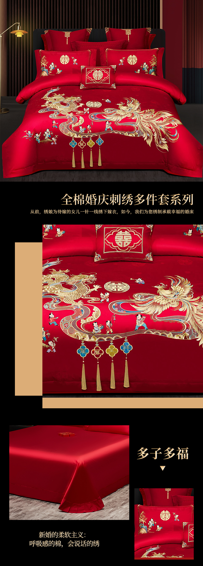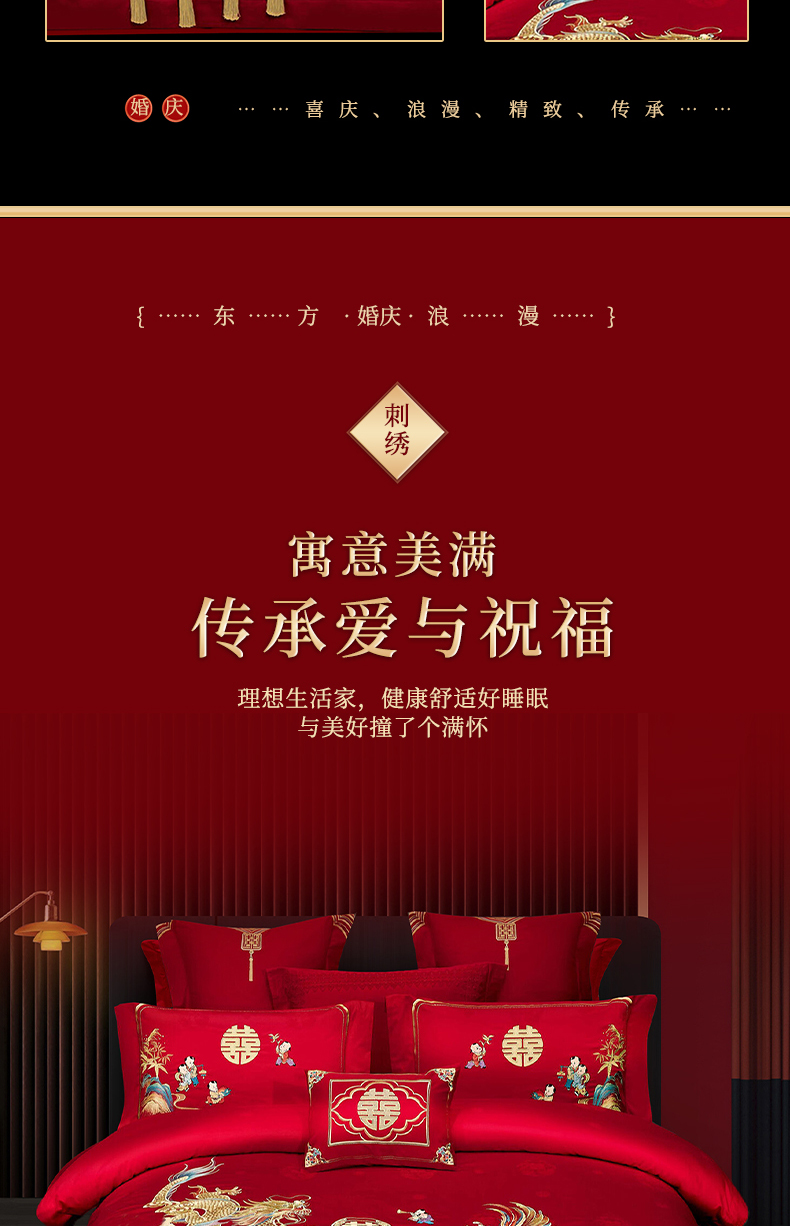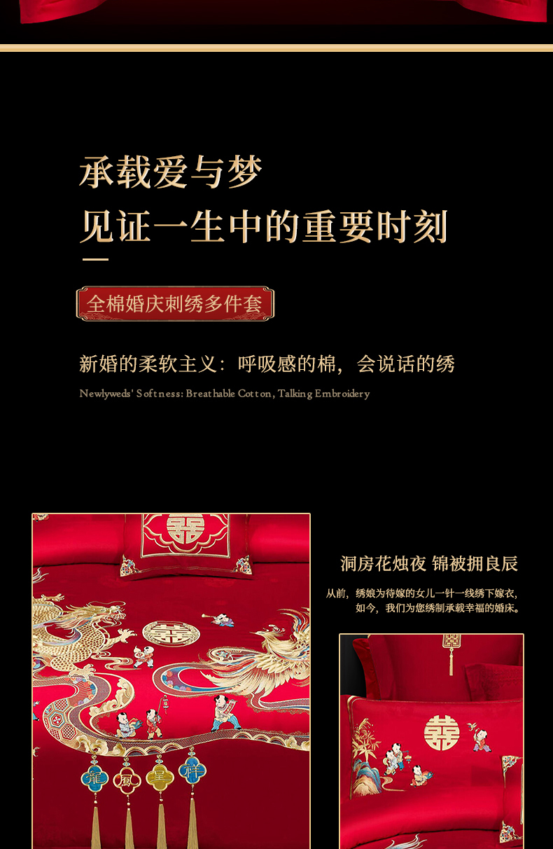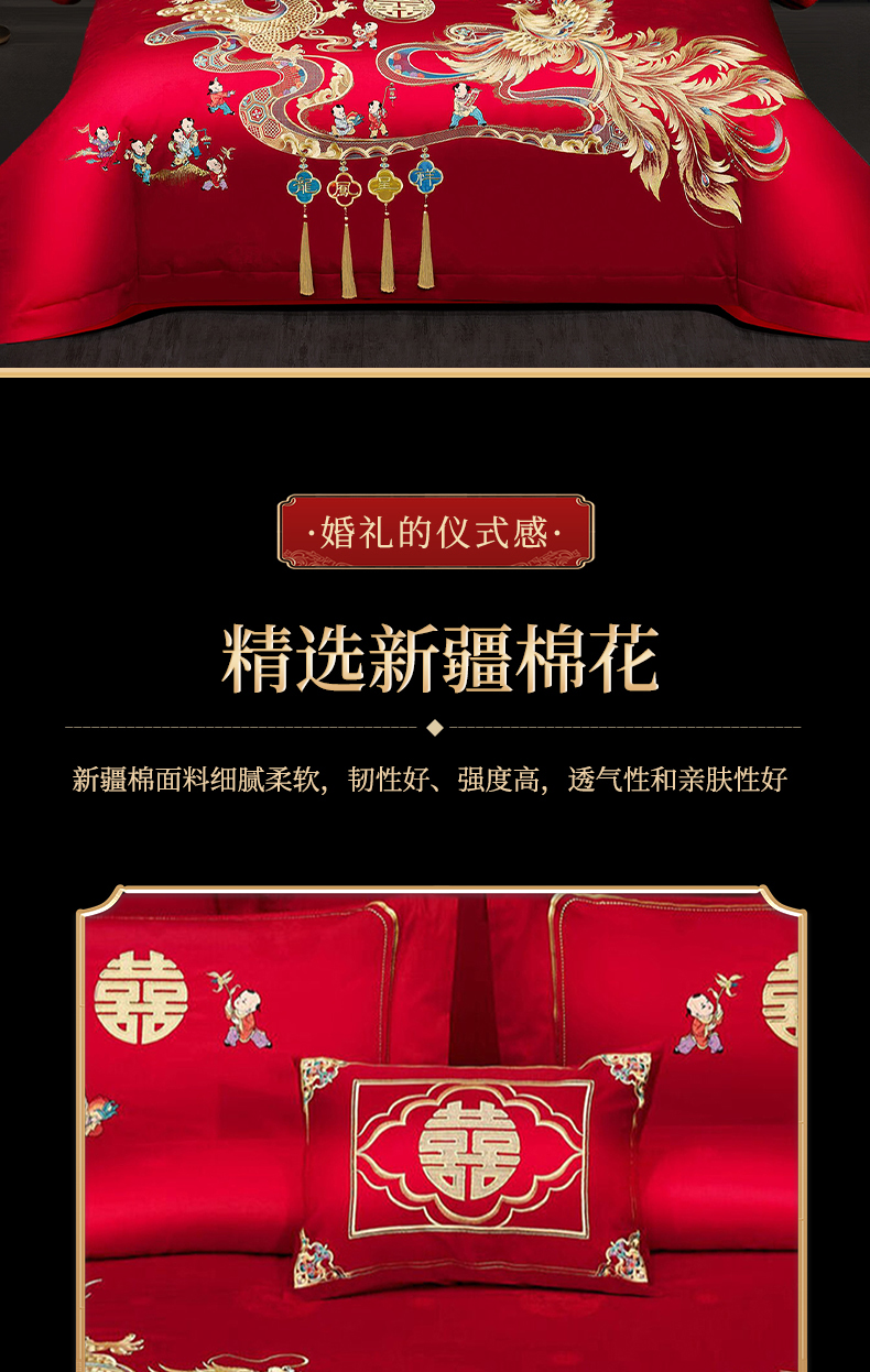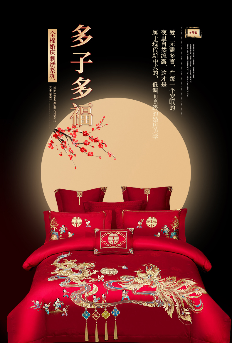 当前位置: 91家纺网 > 商品网购 > 床品套件 > 四件套 > 婚庆四件套 > 浩情国际婚庆供货中心 2026新款100%全棉长绒棉纯棉婚庆四件套结婚刺绣六件套多件套长期供货 (提供买家秀) 多子多福