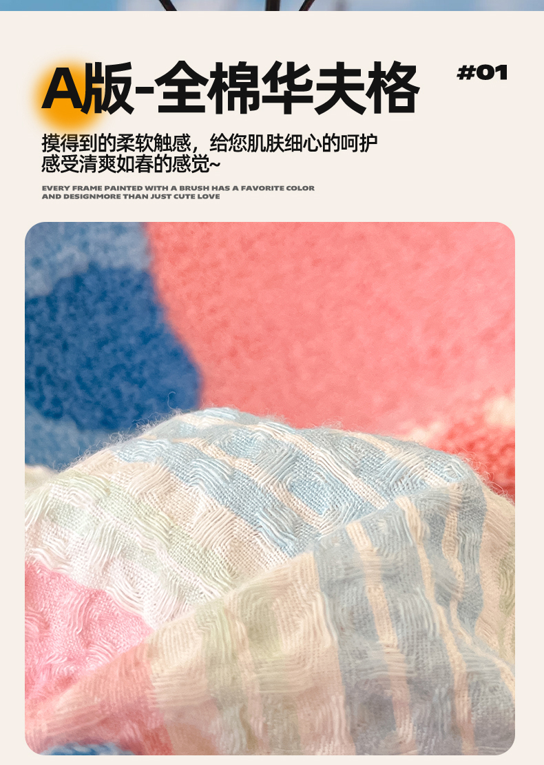 商品名称:笙意家纺 2026新款全棉A版华夫格B版40支毛巾绣四件套 咪咪小猫