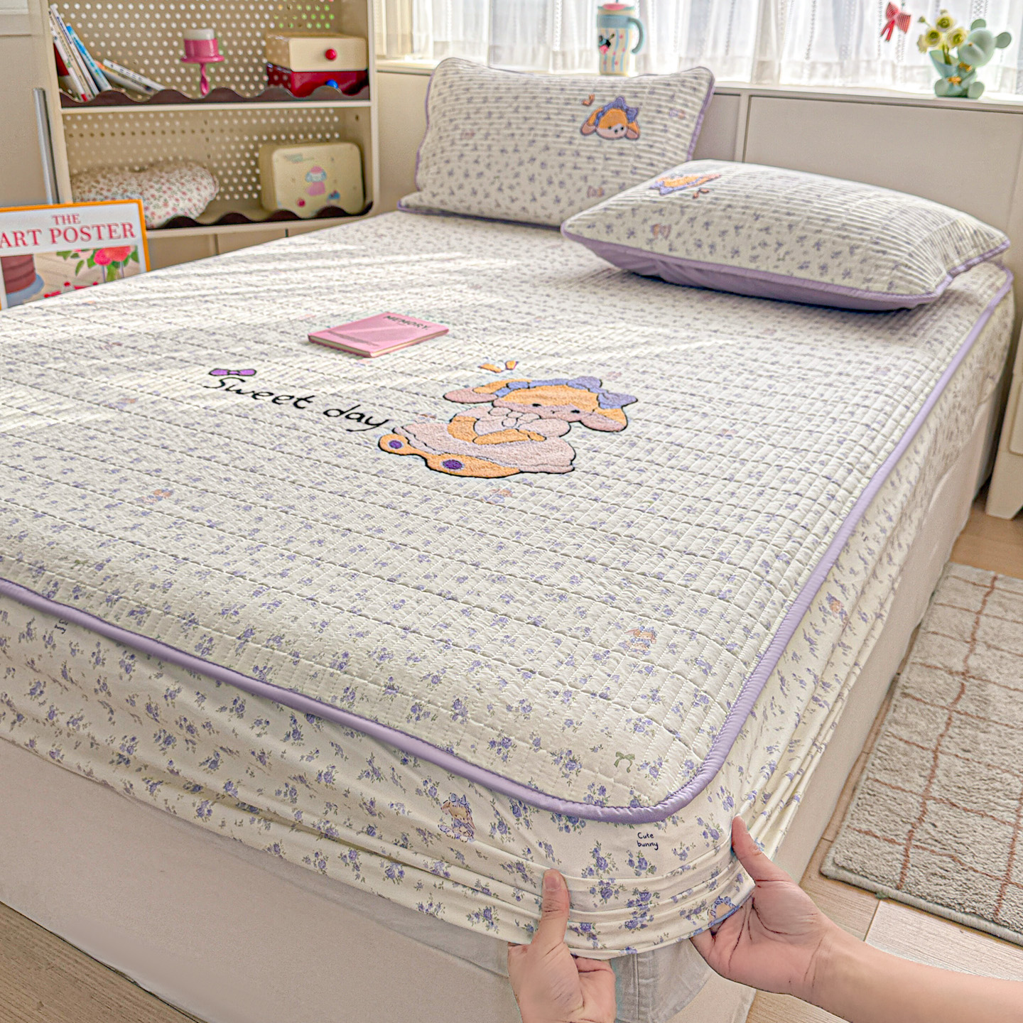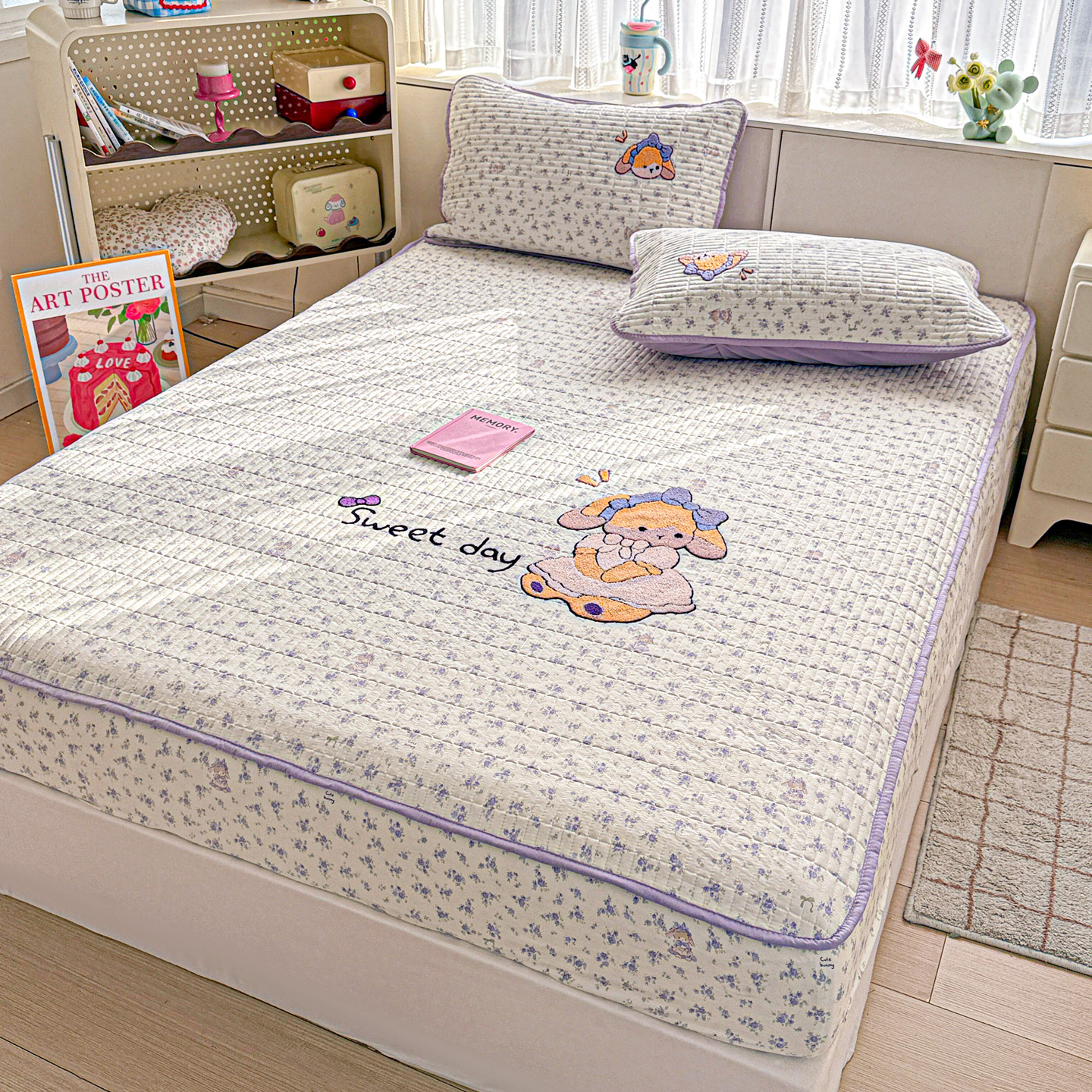 (总)富米莱单品馆 2026新款仿棉小清新夹棉毛巾绣四季通用学生薄款床垫床褥三件套一跑量款,安妮女孩,豹纹蝴蝶结,豹纹猫,嗨嗨兔,可爱小象,梦幻乐园,奶味狗狗,小新日记,星星伙伴