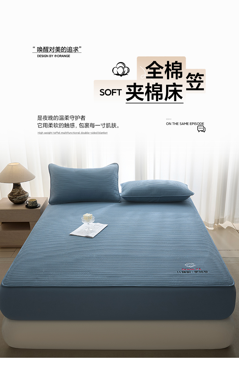 • 91家纺网 家纺一手货源 找家纺 芬晴家纺 2026新款知音全棉棉花床笠单品床笠床笠单件 知音-雾蓝