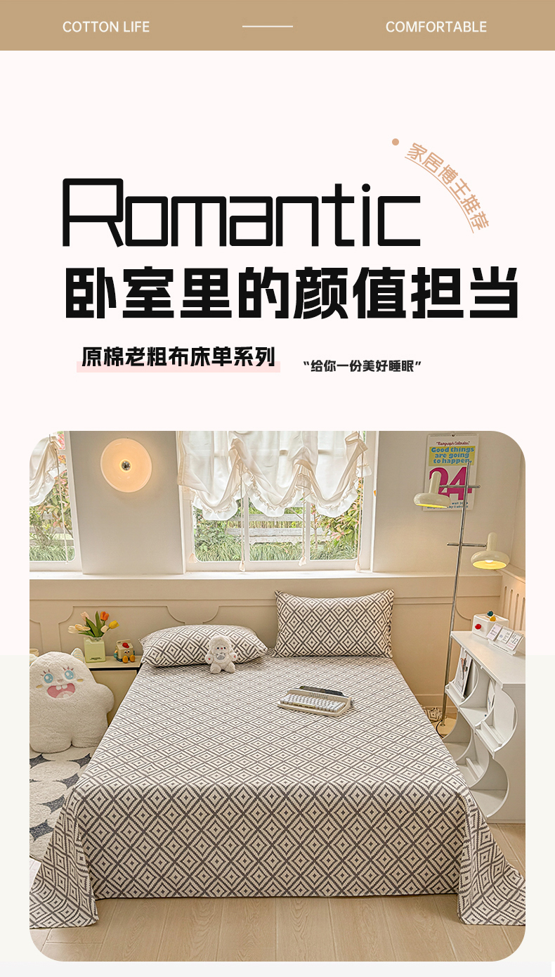 (总)爱彼家纺 2026新款升级细沙印花老粗布床单单品床单床单单件-细沙系列四,花笺,花漾手礼,花屿南瓜,蓝花序,蓝菊绘,山河日立,甜心