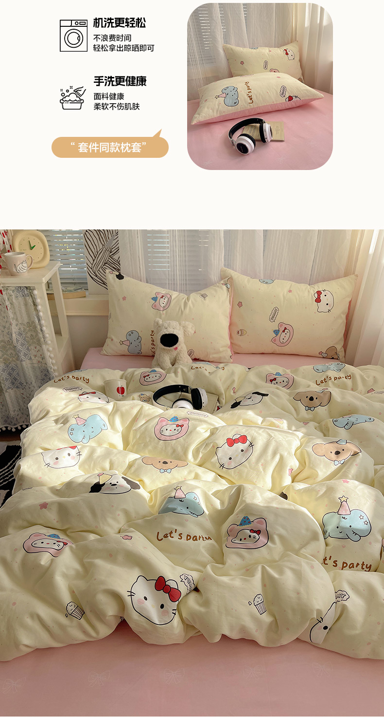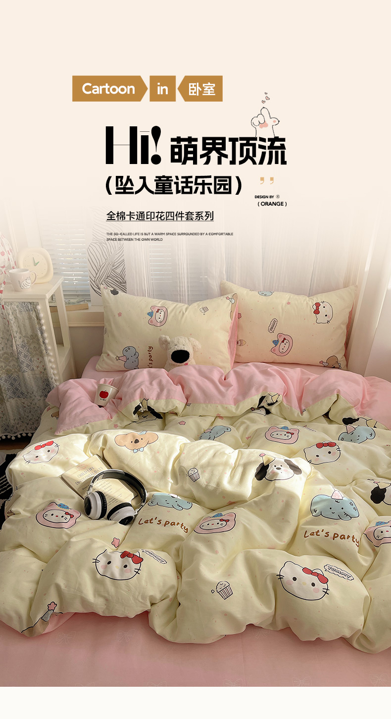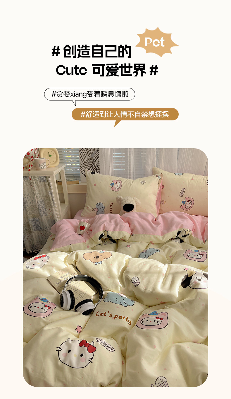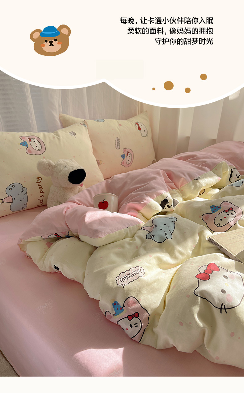 商品名称:雅居纺家纺 2026新款全棉卡通印花可爱小猫四件套 猫咪伙伴