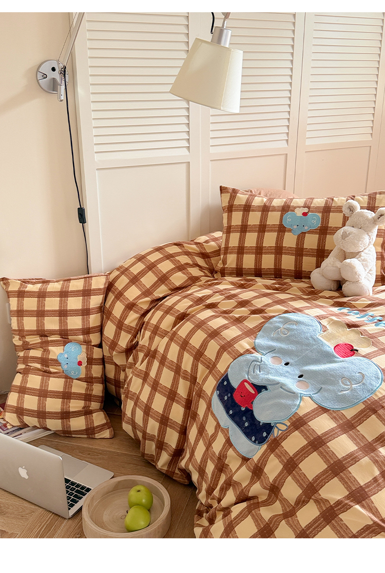 (总)美乐迪家纺 2026新款贴布绣云感双层纱四件套,大象,可爱小马,比熊,布偶猫,躲猫猫,头套小猫
