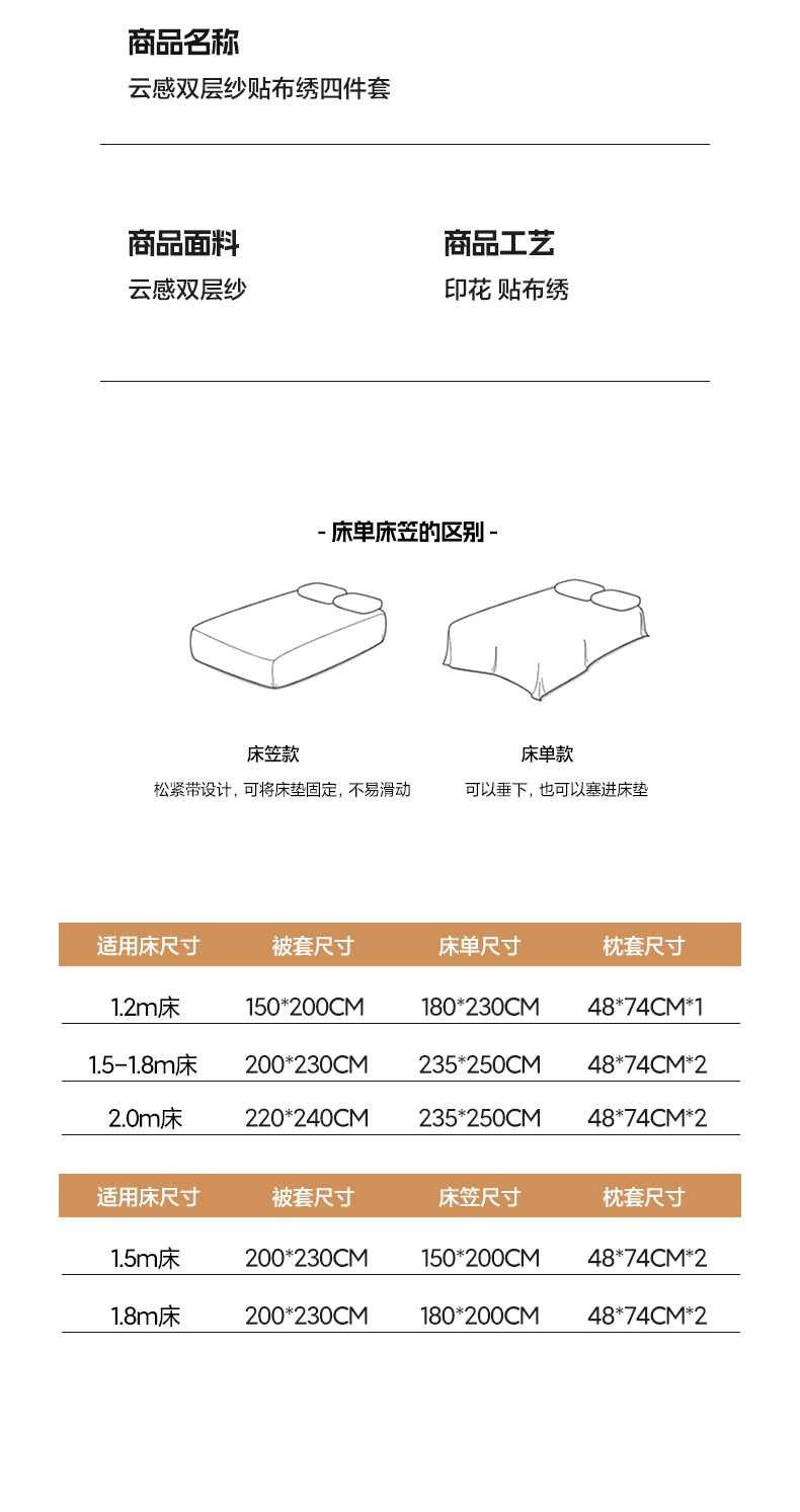 商品名称:美乐迪家纺 2026新款贴布绣云感双层纱四件套 比熊