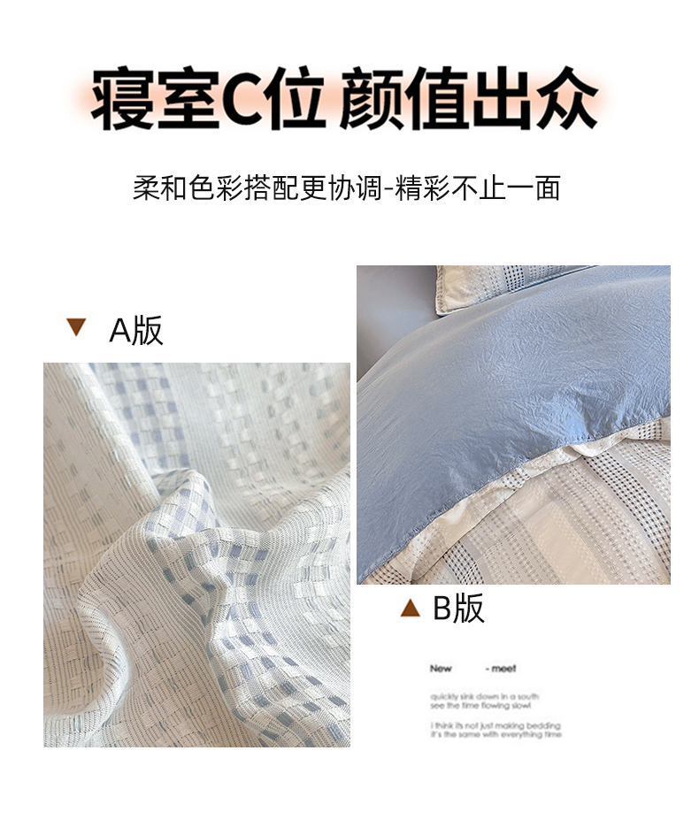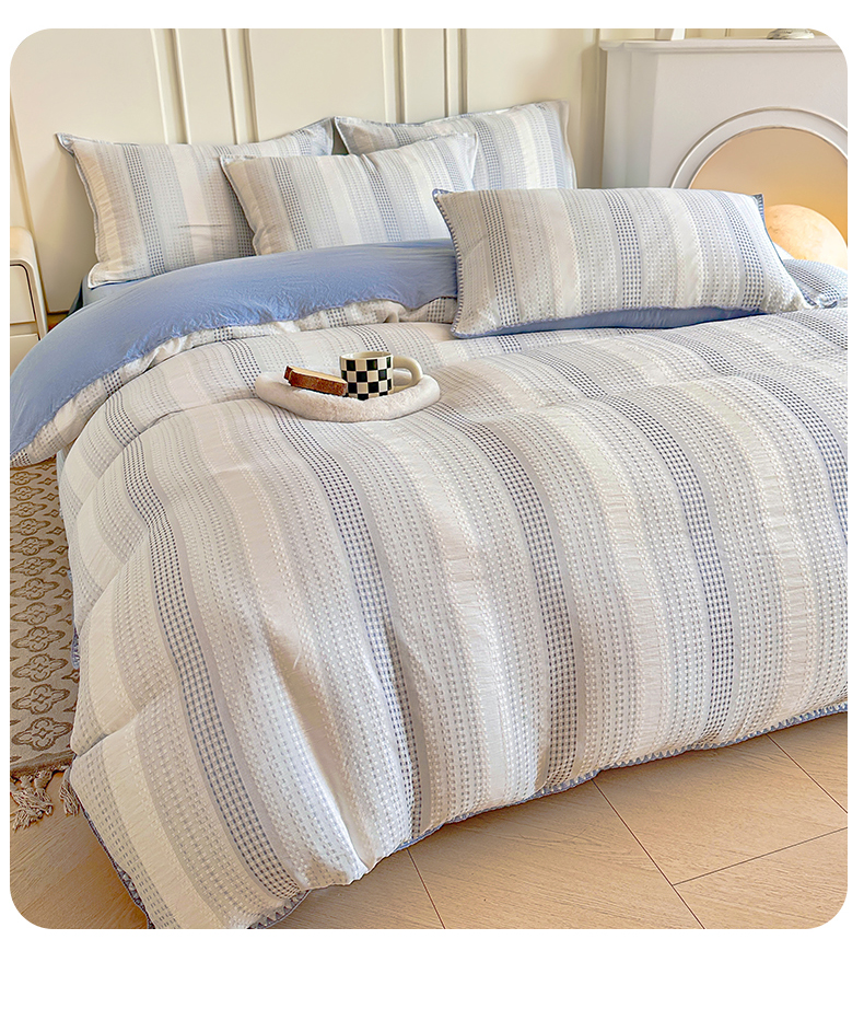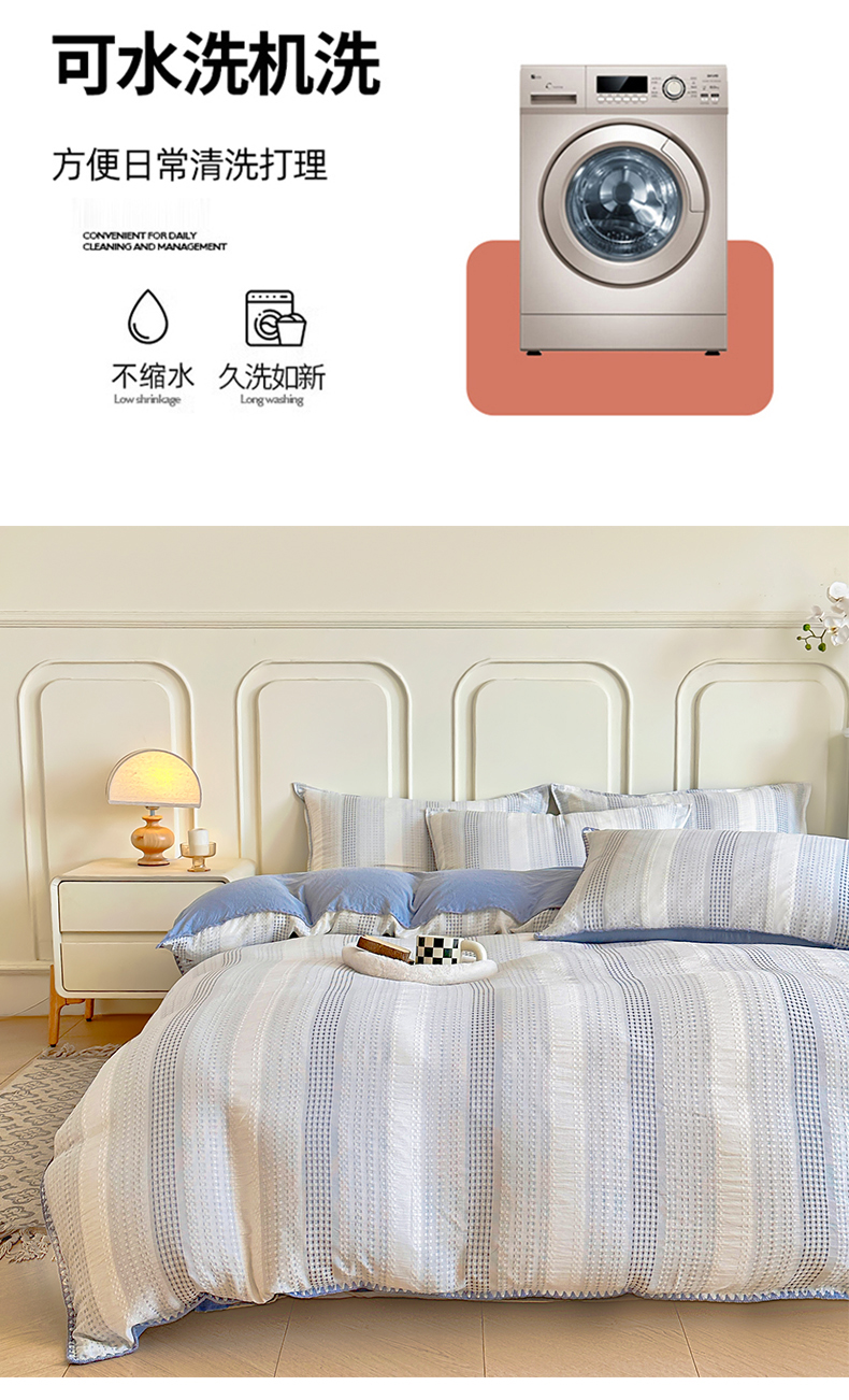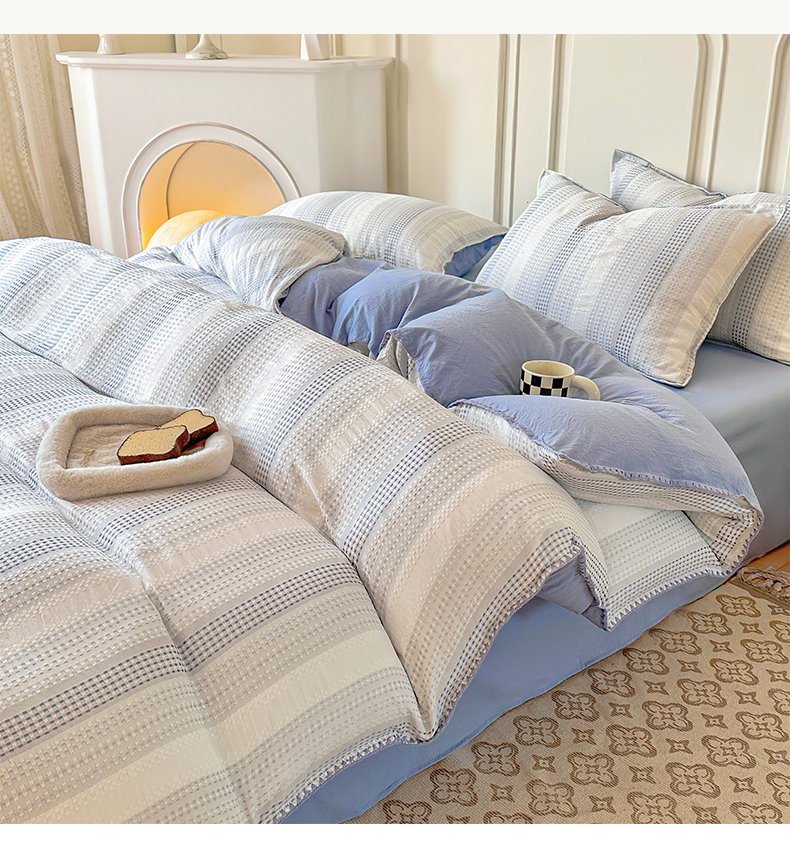 当前位置: 91家纺网 > 商品网购 > 床品套件 > 四件套 > 水洗棉四件套 > 木子家纺 2026新款水洗棉贝壳边四件套-皖沙 海天蓝