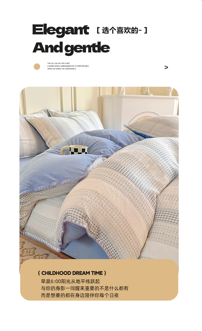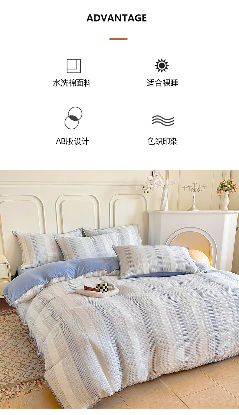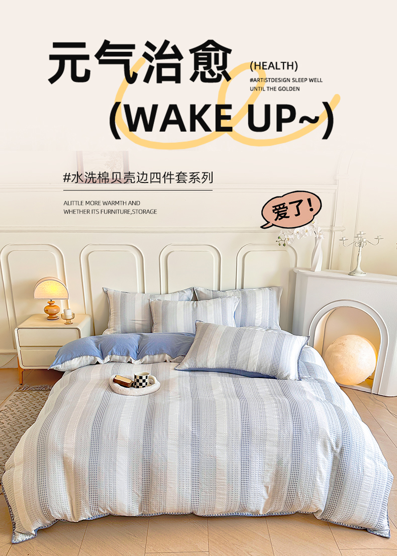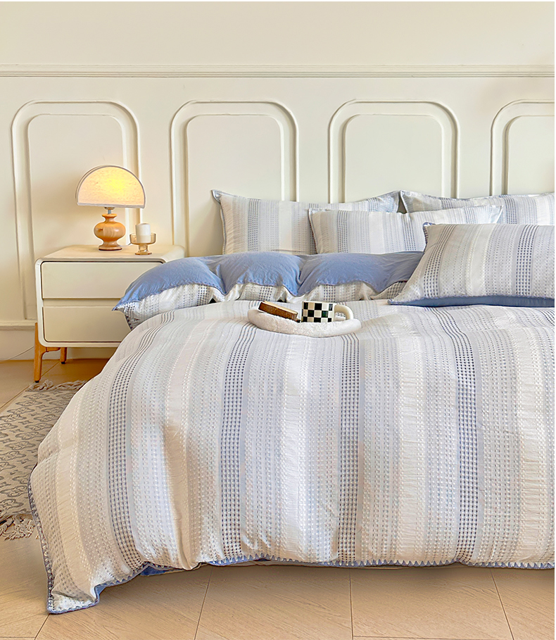 当前位置: 91家纺网 > 商品网购 > 床品套件 > 四件套 > 水洗棉四件套 > 木子家纺 2026新款水洗棉贝壳边四件套-皖沙 海天蓝