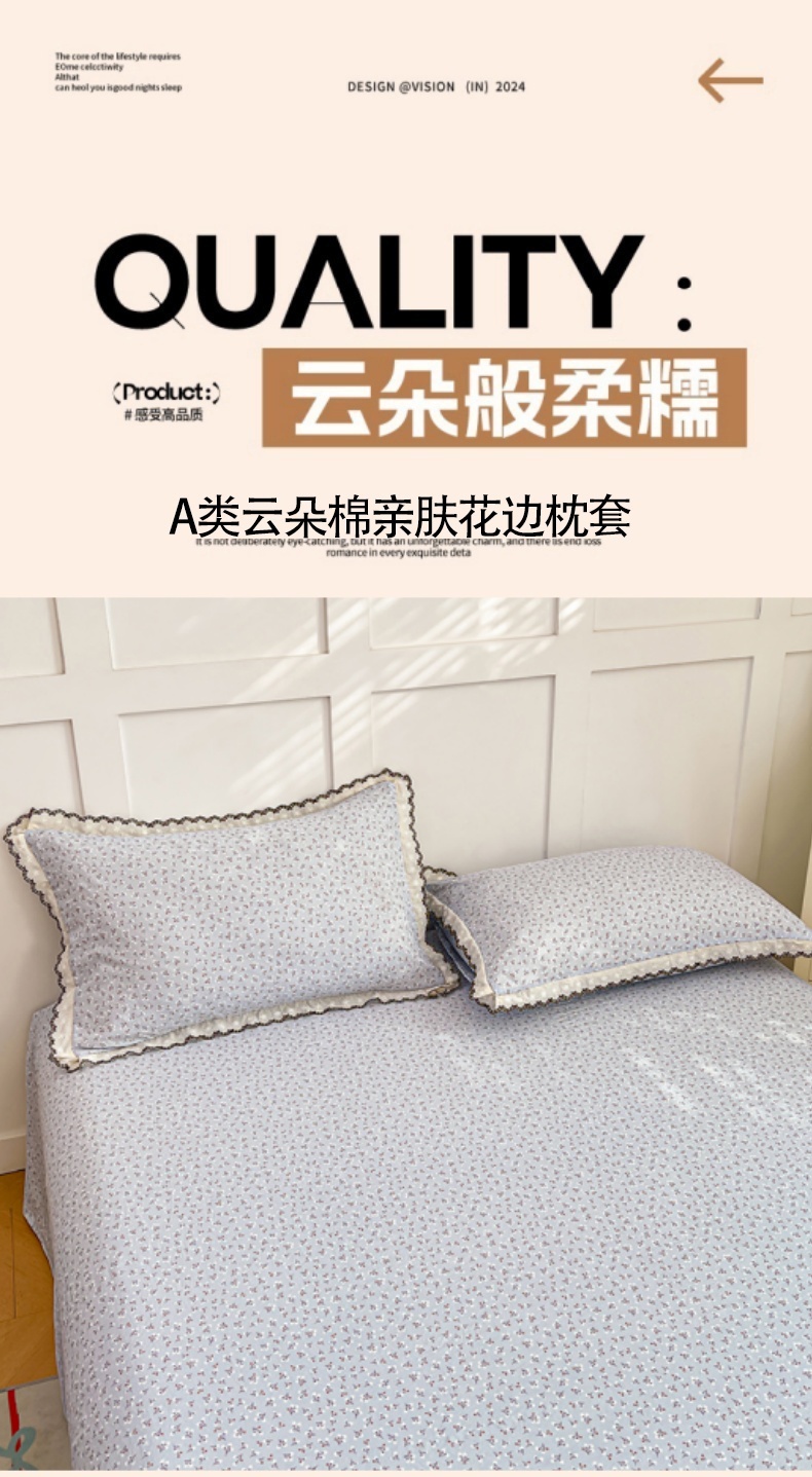 • 91家纺网 家纺一手货源 找家纺 (总)圣比熊 2026新款A类云朵棉蕾丝花边枕套宿舍单人单只一只装枕芯内胆套,满天星-蓝(单层蕾丝花边),花漾甜心(单层蕾丝花边),爱丽丝-粉(单层蕾丝花边),春日暖阳(单层蕾丝花边),粉黛花园(单层蕾丝花边),海棠花开(单层蕾丝花边),蝴蝶梦境(单层蕾丝花边),花间迷离(单层蕾丝花边),花蔓清风(单层蕾丝花边),花无归期(单层蕾丝花边),花无意(单层蕾丝花边),花屿轻梦(单层蕾丝花边),兰亭序-灰(单层蕾丝花边),兰亭序-蓝(单层蕾丝花边),芊芊花海(单层蕾丝花边),小星愿(单层蕾丝花边),紫韵星野(单层蕾丝花边)