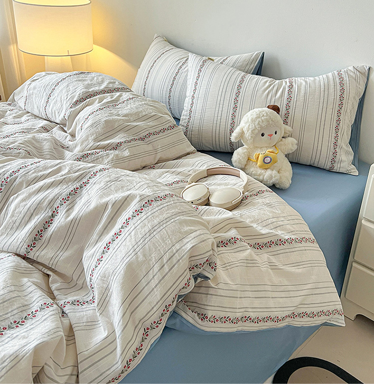 (总)爱丽丝 2026新品色织提花棉麻四件套-木兮花边款,木兮花边款