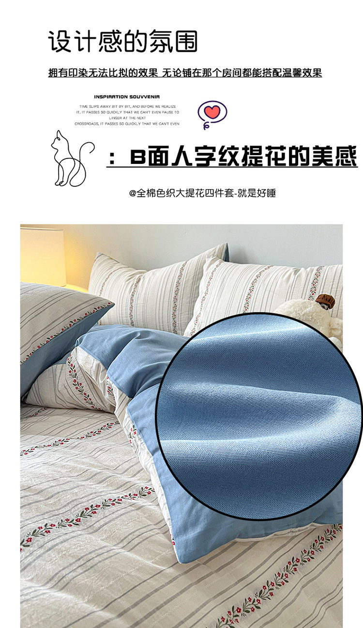 商品名称:爱丽丝 2026新款全棉剪花色织提花四件套 花颜-蓝