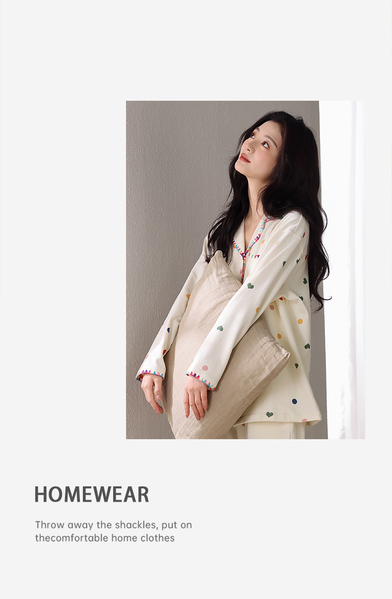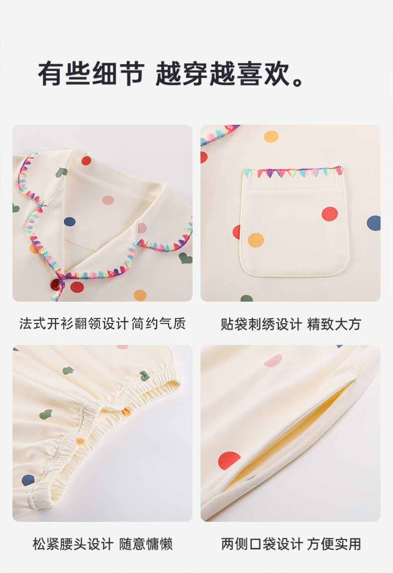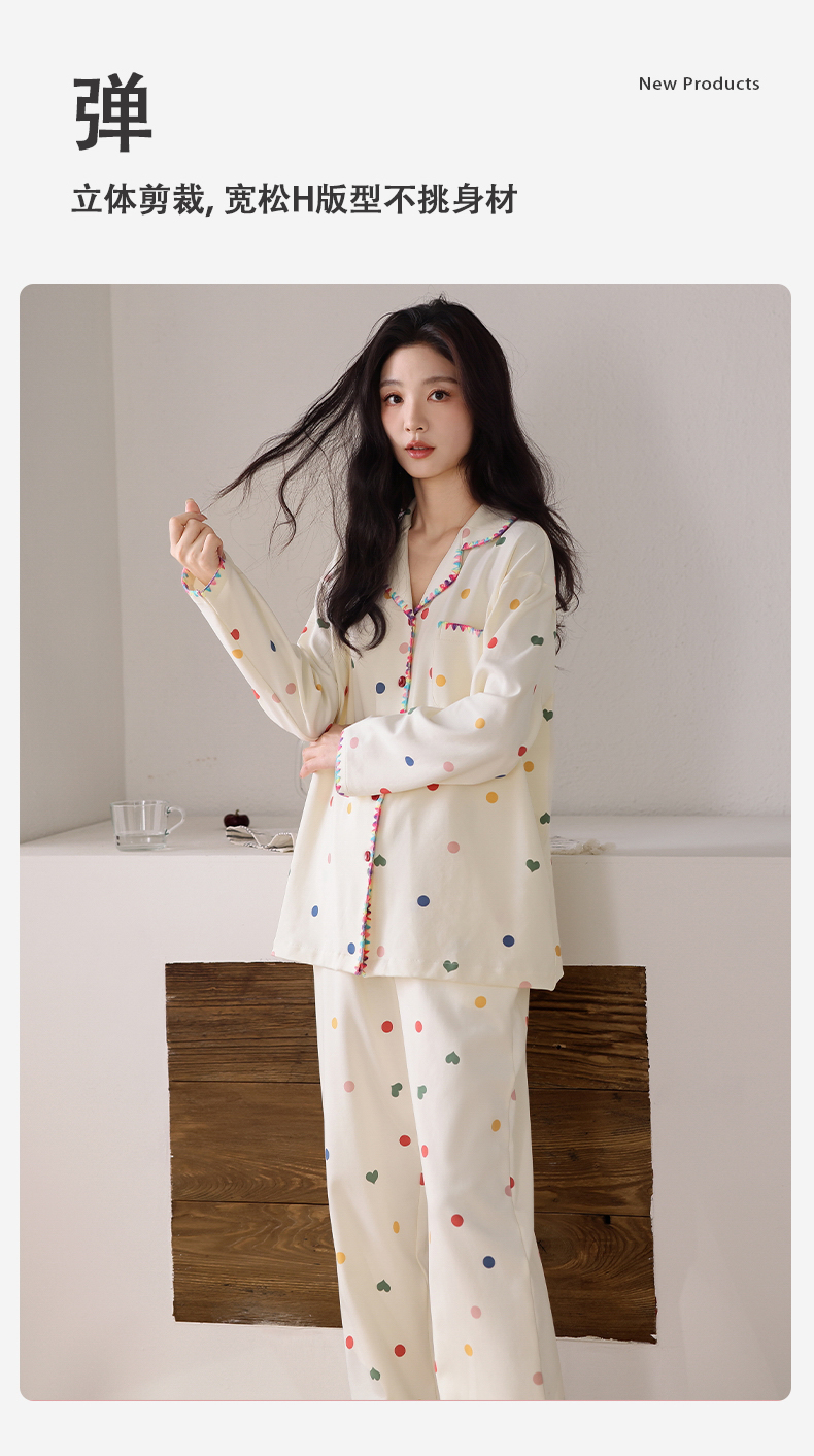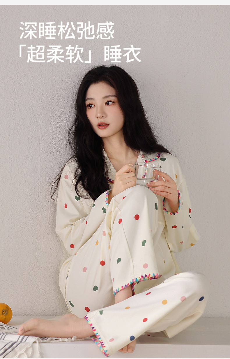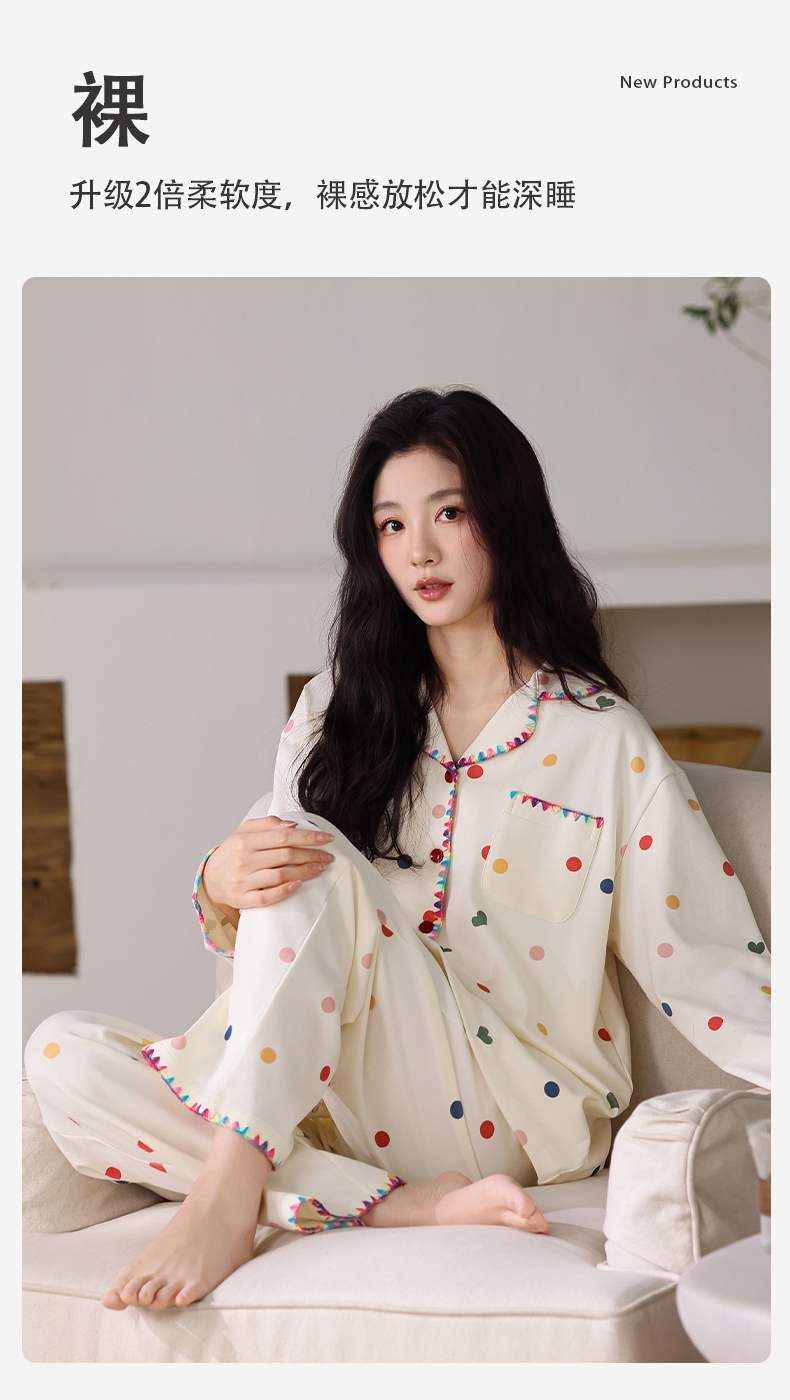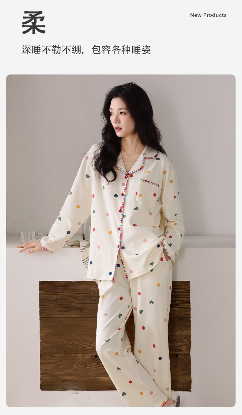 商品名称:洛兰沙家居馆 2026新款长袖睡衣女款纯棉春季印花开衫翻领家居服可外穿套装第一批 45142