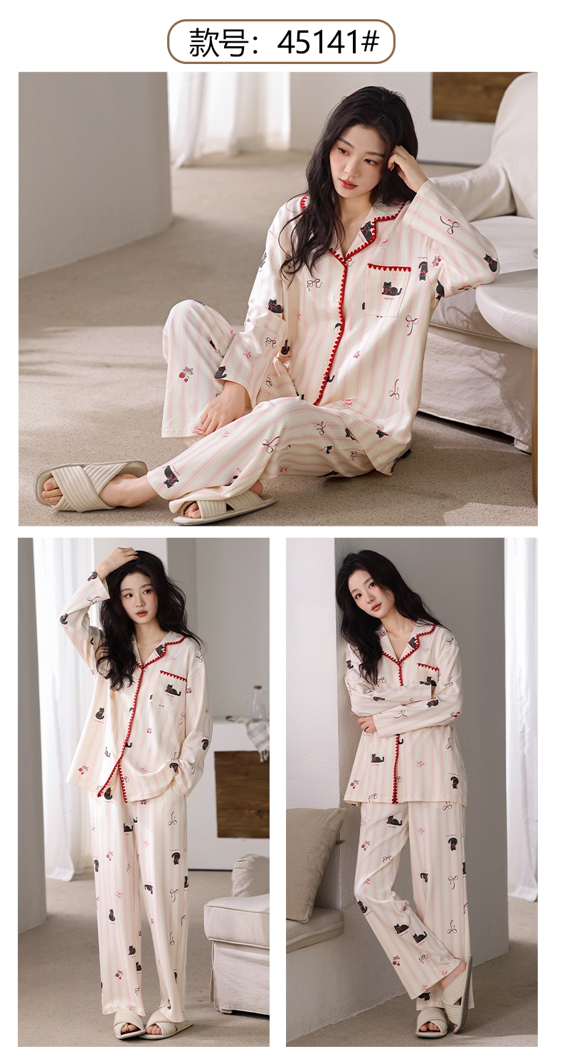 (总)洛兰沙家居馆 2026新款长袖睡衣女款纯棉春季印花开衫翻领家居服可外穿套装 第二批,45145,45146,45147