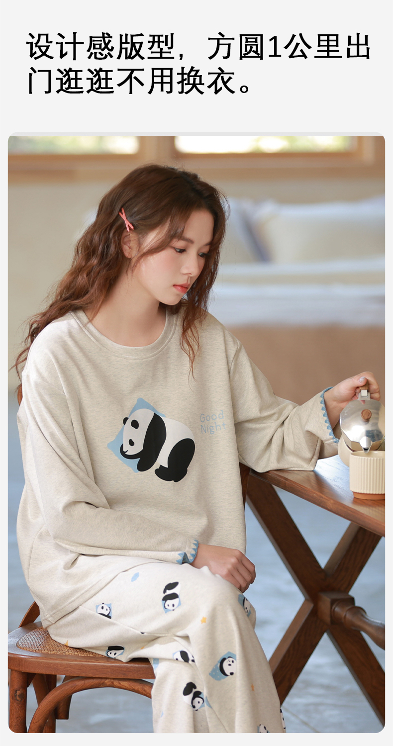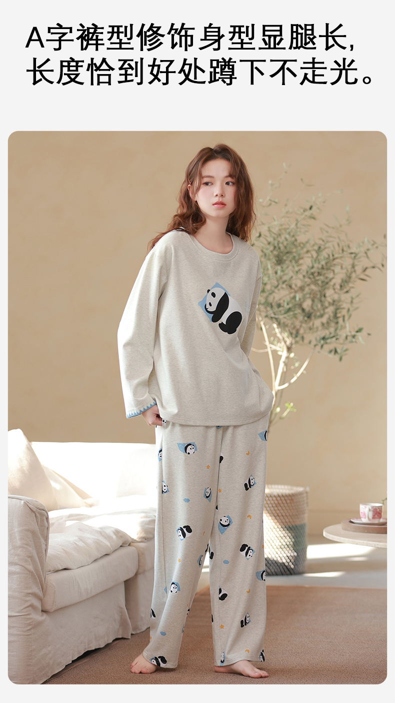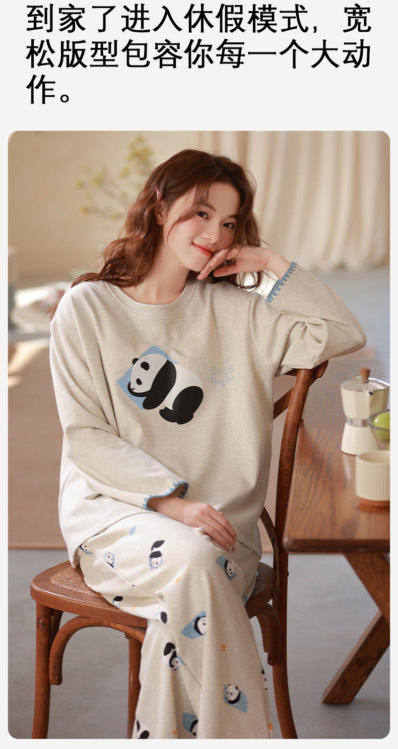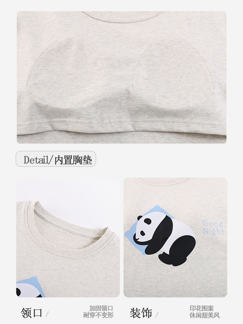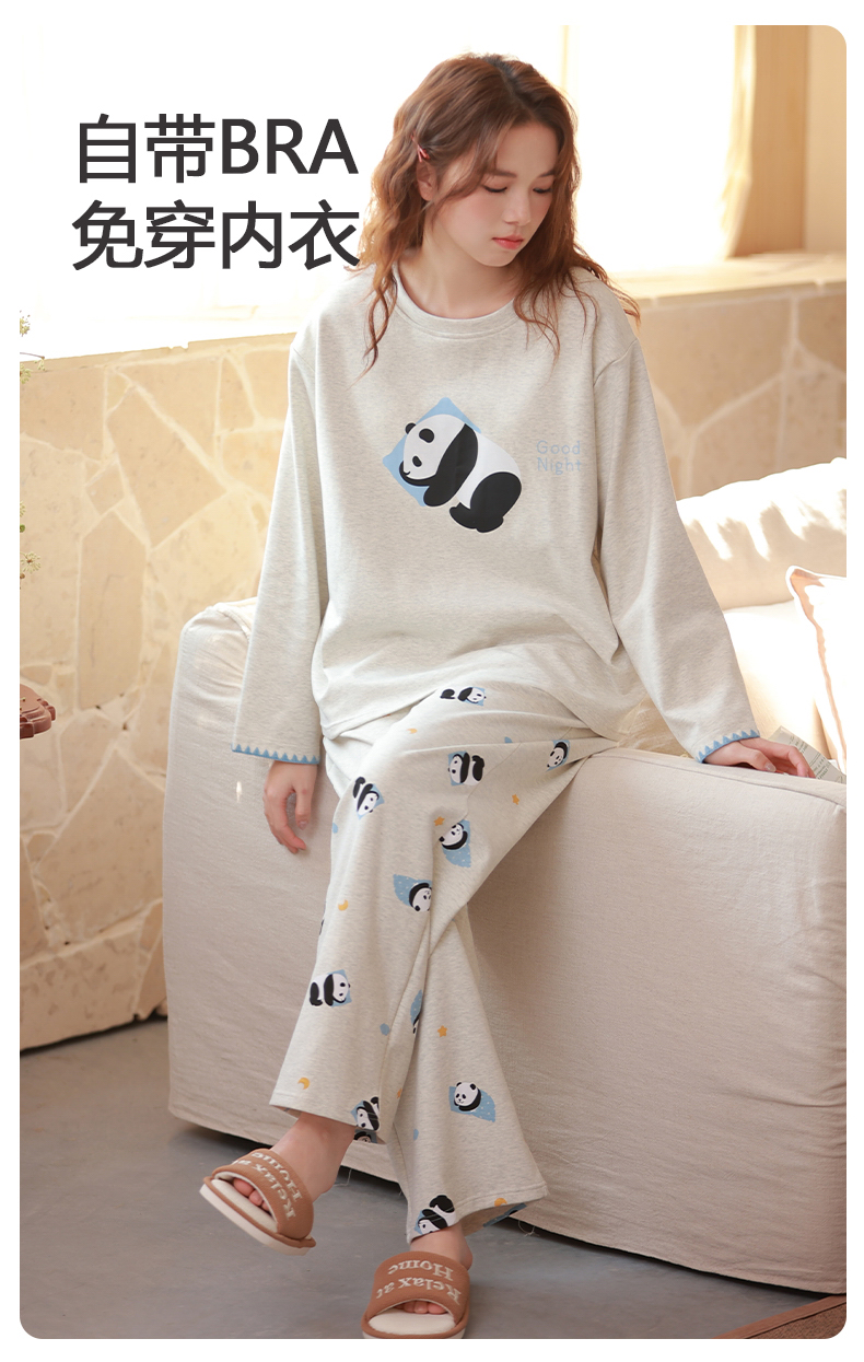 商品名称:洛兰沙家居馆 2026春季新款自带胸垫纯棉居家睡衣女长袖套头可爱家居服套装 第二批 31087