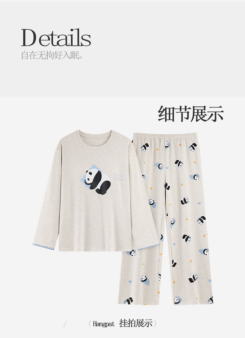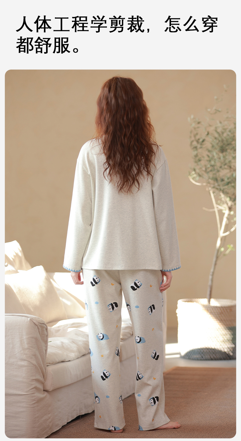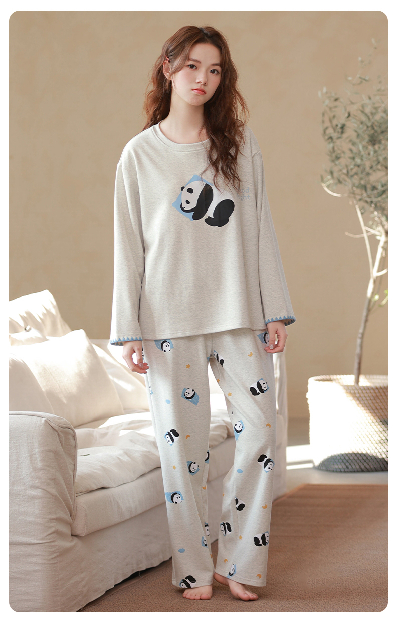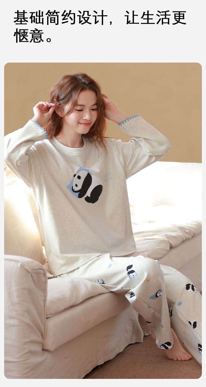 商品名称:洛兰沙家居馆 2026春季新款自带胸垫纯棉居家睡衣女长袖套头可爱家居服套装 第二批 31087