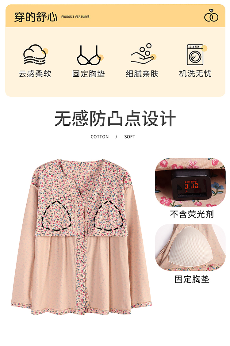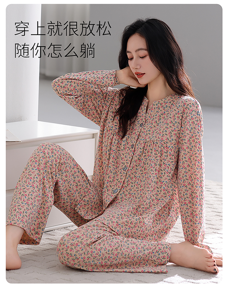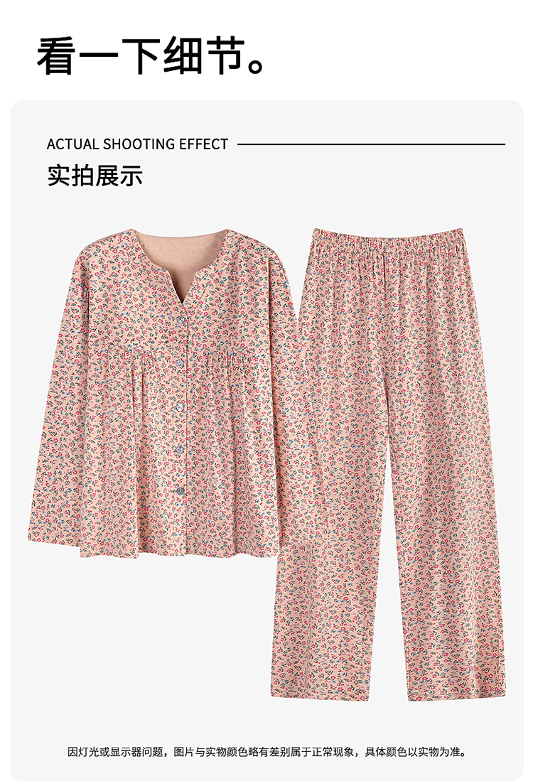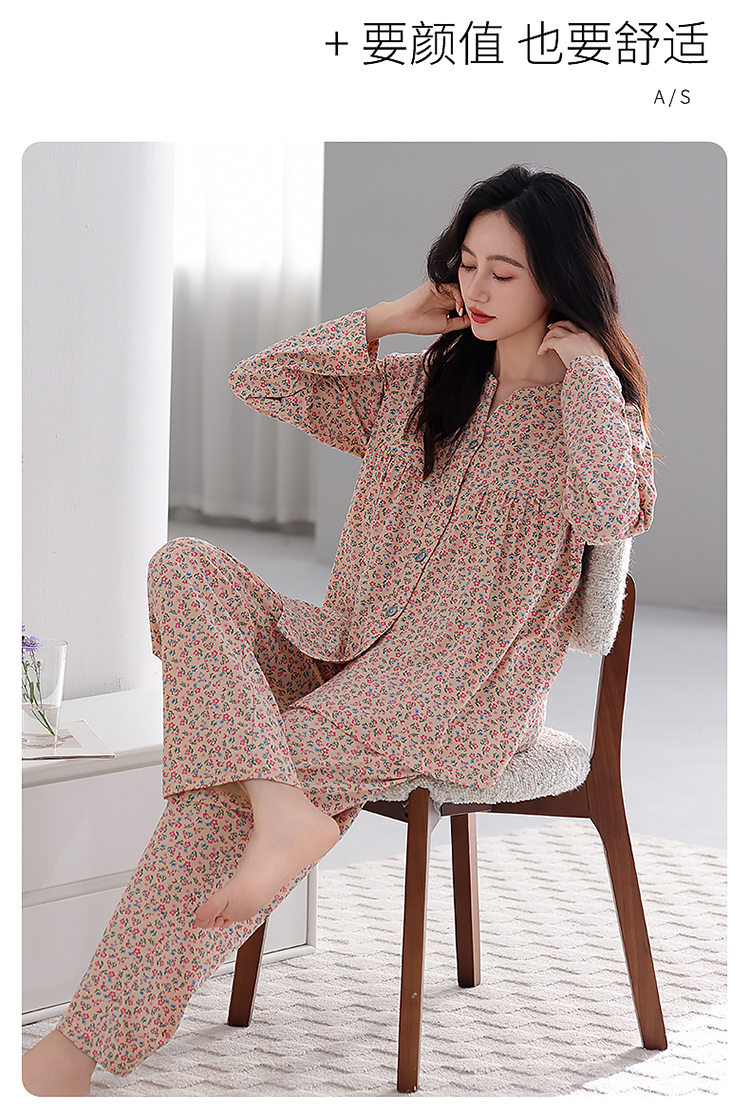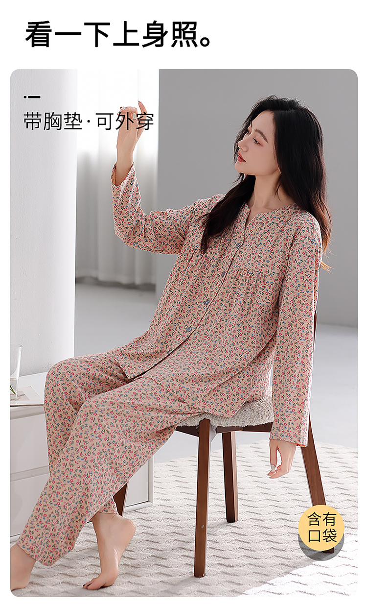 商品名称:洛兰沙家居馆 2026新款秋冬睡衣女拉架棉带胸垫可外穿长袖长裤青中年女士家居服套装第12批 5907