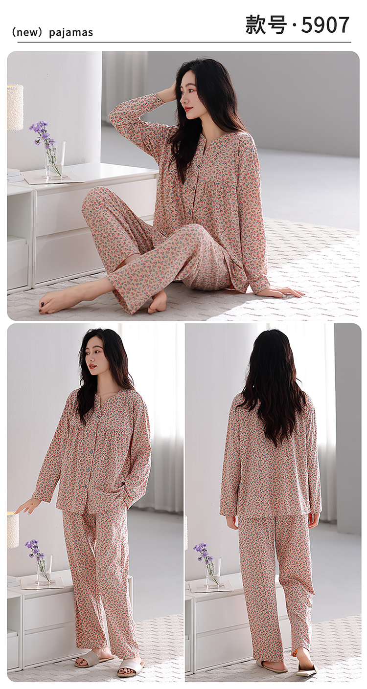 (总)洛兰沙家居馆 2026新款长袖睡衣女款纯棉春季印花开衫翻领家居服可外穿套装 第二批,45145,45146,45147