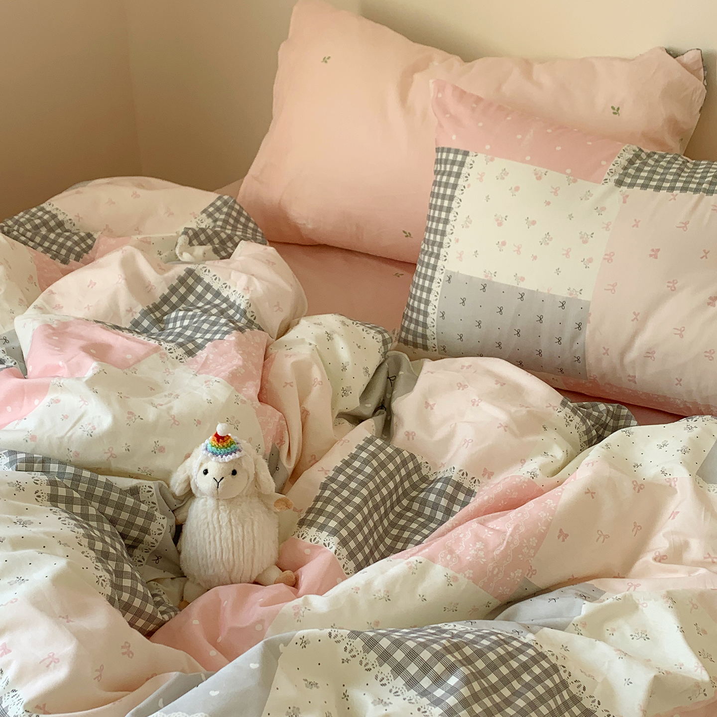 (总)桃喜 2026春夏新品全棉碎花三件套四件套-场景二,粉格拼布碎花(全棉),复古拼布碎花(全棉),馥郁蓝(全棉),赫本(全棉),绿格拼布碎花(全棉),山茶(全棉),香芋紫格碎花(全棉),早春花园(全棉)